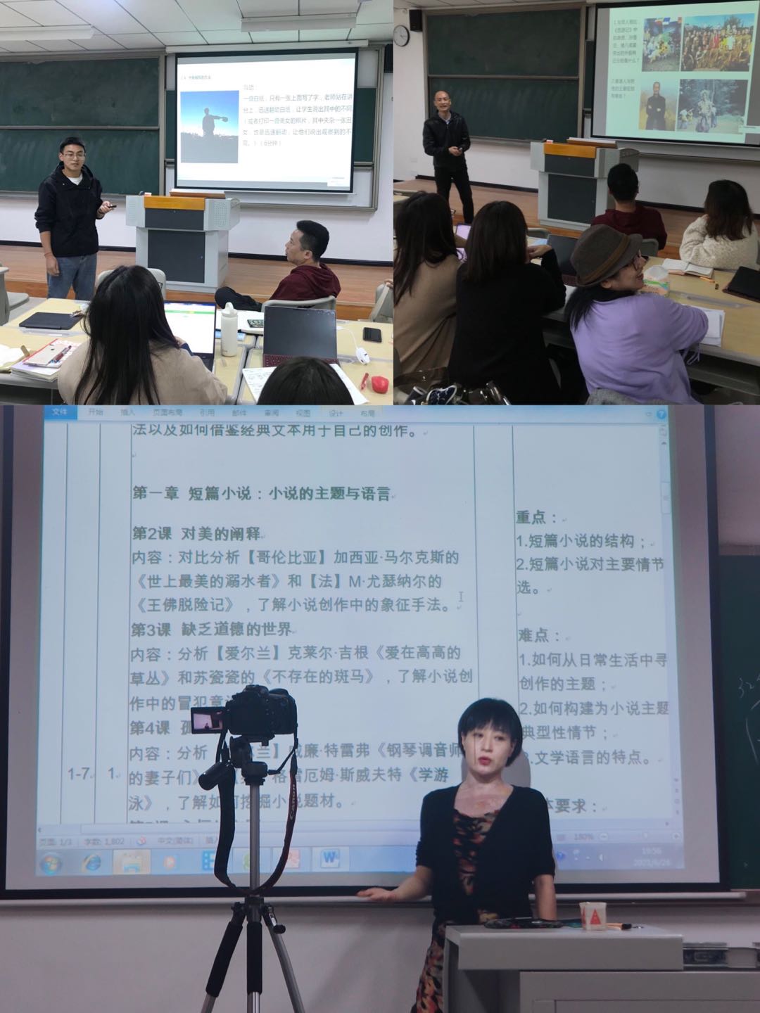考虑到教学技能的培养和提升是一项长期的任务,创意写作学院也为新老师制定了长期的成长计划。根据学科教学特点,制定了定期说课、听课并记录心得以及“老带新”的帮扶计划。在本学期内,老教师和新进教师结成对,老教师通过随堂听课或试讲听课等形式,对新教师和其他首次承担教学工作的青年教师进行教学指导。本学期结束后,新老师将进行教学说课竞赛。