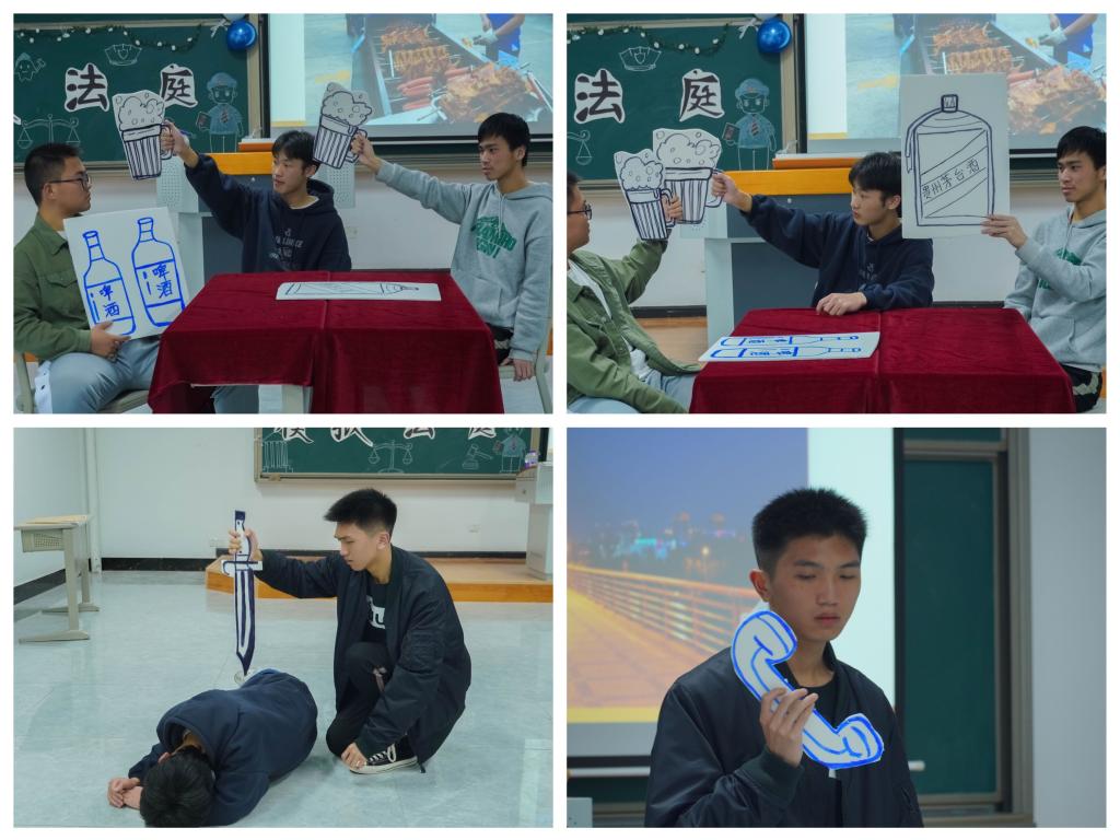 情景剧的尾声“刘正致”主动投案自首,一个模拟法庭就此拉开帷幕,模拟法庭通过法庭准备阶段、法庭调查阶段、法庭取证阶段、法庭辩论阶段等四个阶段的庭审展示,向同学们生动地普及了法律知识。庭审中的“公诉人”与“刘正致的辩护人”就“刘正致”是否故意刺杀被害人展开了激烈的辩论。更是将全场的浓重氛围引向了高潮。在辩论环节,演员们的精彩表演,使得旁观的同学忍不住喝彩。模拟法庭不仅让同学们更清晰直观的了解了法庭审理案件的流程和细节,还培养和锻炼了同学们关于发现问题、分析问题和解决问题的能力。这次模拟法庭,同学们也认识到,作为学生,学法、懂法、知法、守法的必要性,同时每个人都应该尽己所能,自觉维护法律的权威!