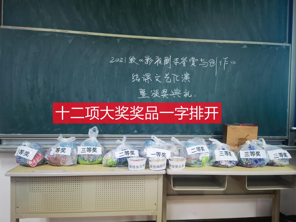 最终,各个奖项出炉了。五组《可能会迟到但从不缺席》夺得一等奖,二组和七组分享两个二等奖。其他六组获得三等奖。最佳编剧奖被五组的刘东东同学斩获。最佳男主角由“乘客”王超揽获。最佳女主角由王炸包丽芳同学抱在怀中。