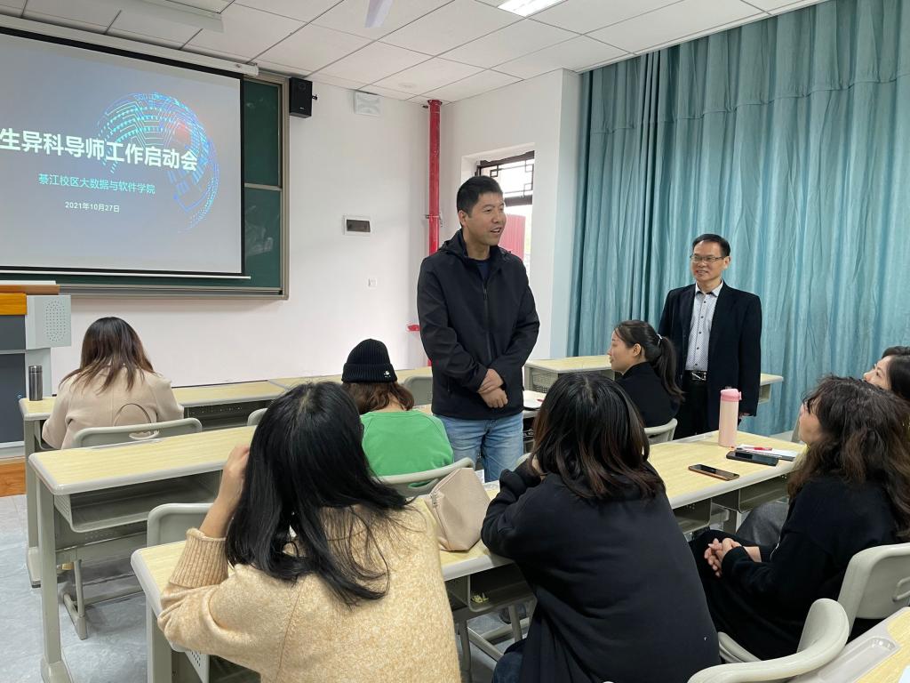 为了深入推进“以学生发展为中心”的教育理念,为学生提供可感知、可体验、可参与的教育环境,充分运用学校创新育人平台,打造极致的校园互动环境,实现学生成长全员、全程、全方位的培育,我校全面推进全生异科导师制。全生异科导师制是我校在漫漫育人道路上的创新举措,为顺利推行学校新举措,綦江校区大数据与软件学院于10月27日下午在勇者楼402教室召开了全生异科导师工作启动会。会议由林泽金副院长主持,学院异科导师、学院部分教师参加了此次会议。