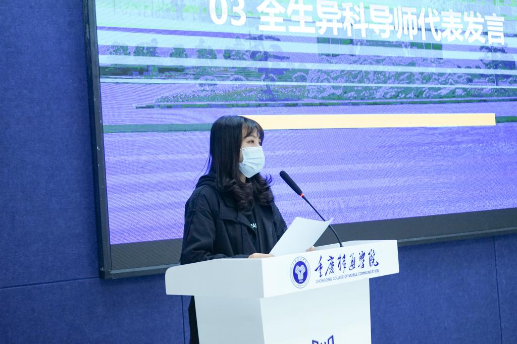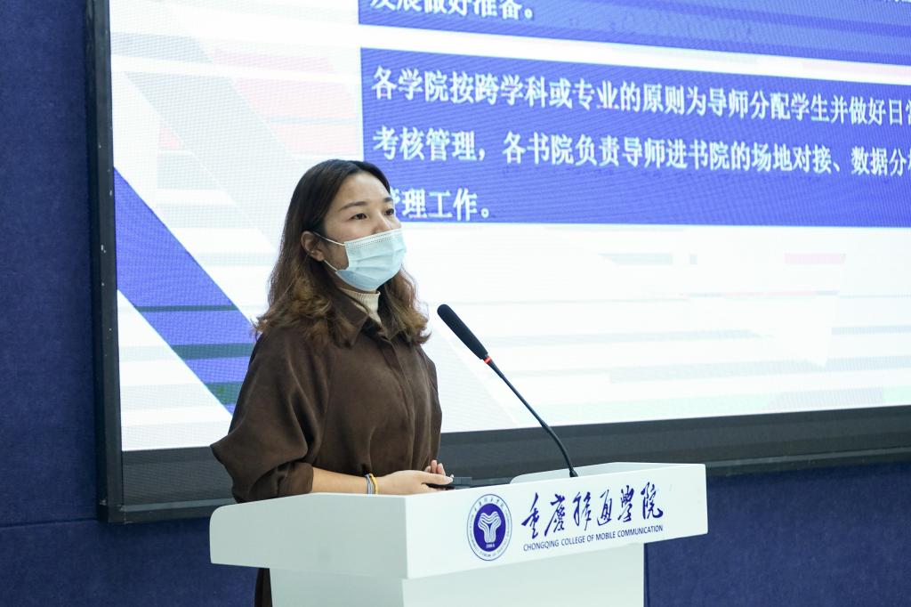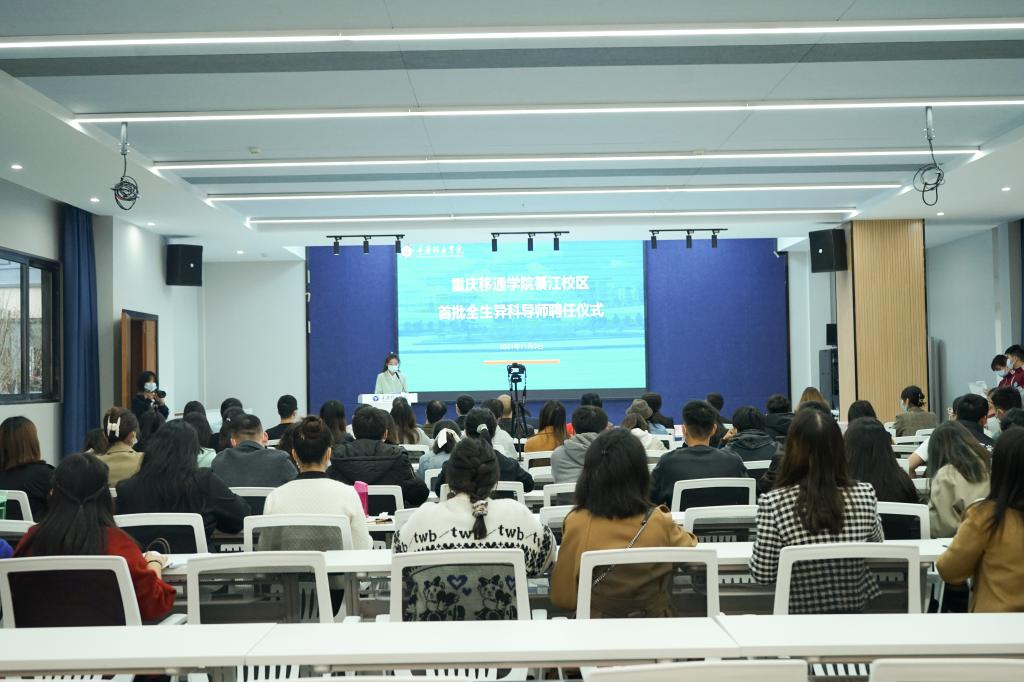 仪式肇始,书院部曹玉姣副部长对綦江校区首批异科导师选拔情况进行了方案解读和总结汇报。经过层层遴选,统共选聘綦江校区异科导师100余人,异科导师团队的组建,意味着“异科导师制”工作正式步上新的台阶,这项工作的开展将深度助力每一位移通学子,期望导师们肩负己任,做好对学生的陪伴与守望。