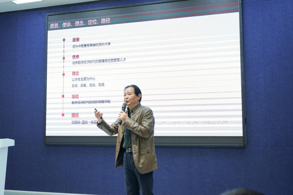 专题培训第一期邀请到校长张德民教授、王永周副校长、孙玺副校长、校长助理张平老师。张校长就中国新商科大学集团办学理念、定位、愿景,办学模式和特色育人使命做了高度凝练总结;王永周副校长通过綦江校区的建设方向与规划分享,导师们对根植于綦江的山水格局下的綦江校区未来的发展非常期待;而孙玺副校长针对学生人才培养方案做了解读,坚持“以人为本”,有效推进“四个回归”,强化课程思政,把社会主义核心价值观教育融入人才培养的全过程。张平校助结合学校的“新商科”内涵及模式,解读信息产业商学院定位下的商科教育的问题;深入浅出的讲解中让导师们受益匪浅,培养新时代全面发展的社会主义建设者和接班人,是我校导师的职责和使命。