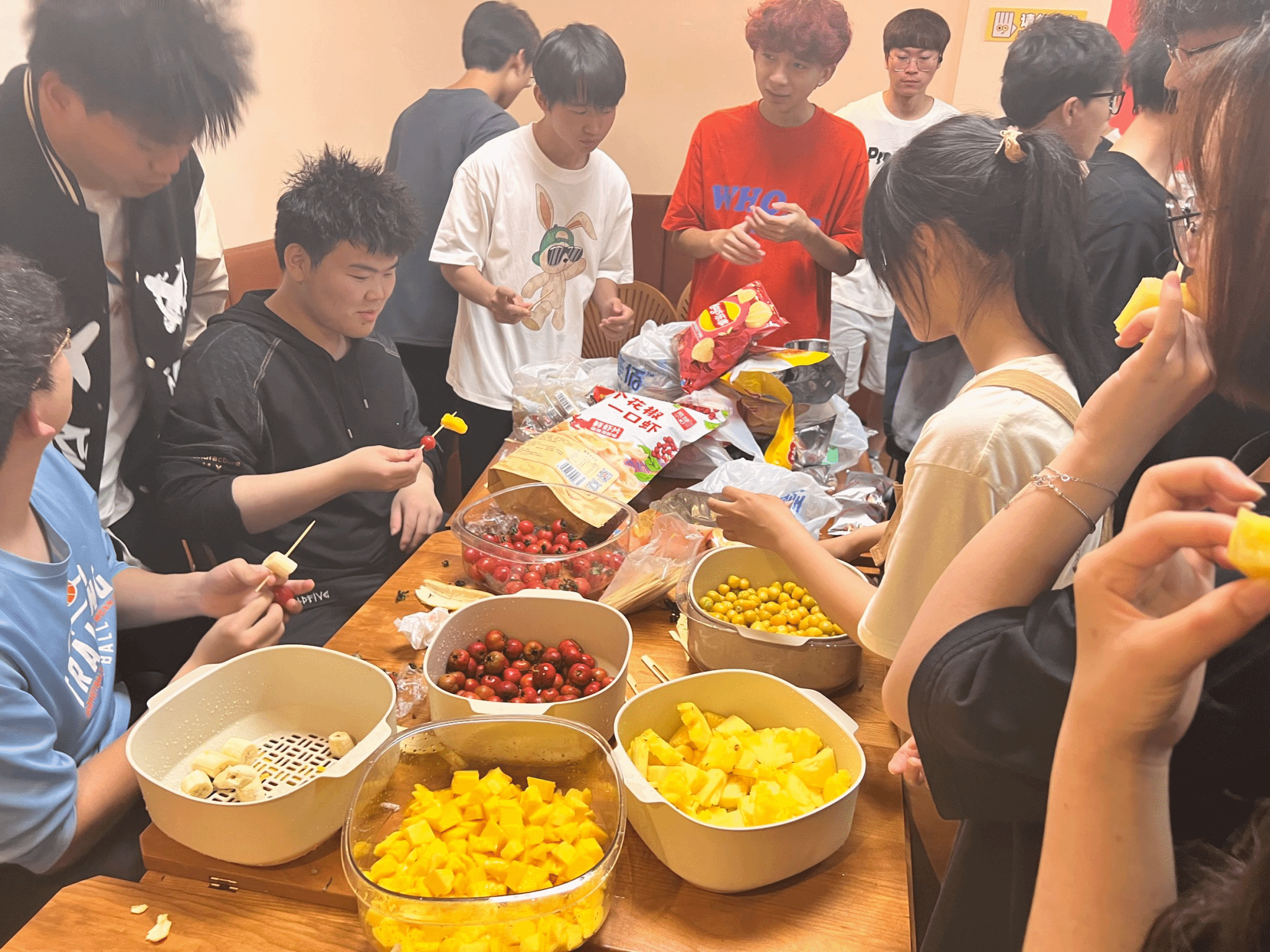 雪沫乳花浮午盏,蓼茸蒿笋试春盘,人间有味是清欢。王颖老师和异科班的同学们相约在活动地点集合,洗净准备好的水果和需要用到的工具,同学们将所有物品放置到制作台上,所谓“万事俱备只欠东风”。