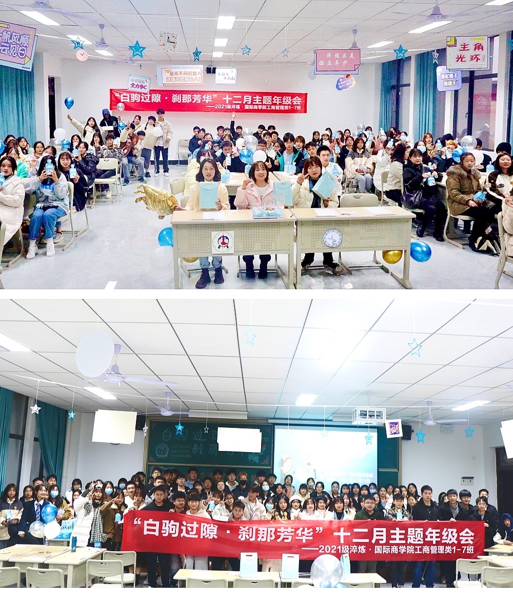 盛年不重来,一日再难晨。为引导同学们珍惜时间、做好大学生涯规划,懂奋进、知感恩,淬炼·国际商学院2021级工商管理类1-7班于12月15日下午16点在勇者楼202开展了“白驹过隙·刹那芳华”主题年级会。