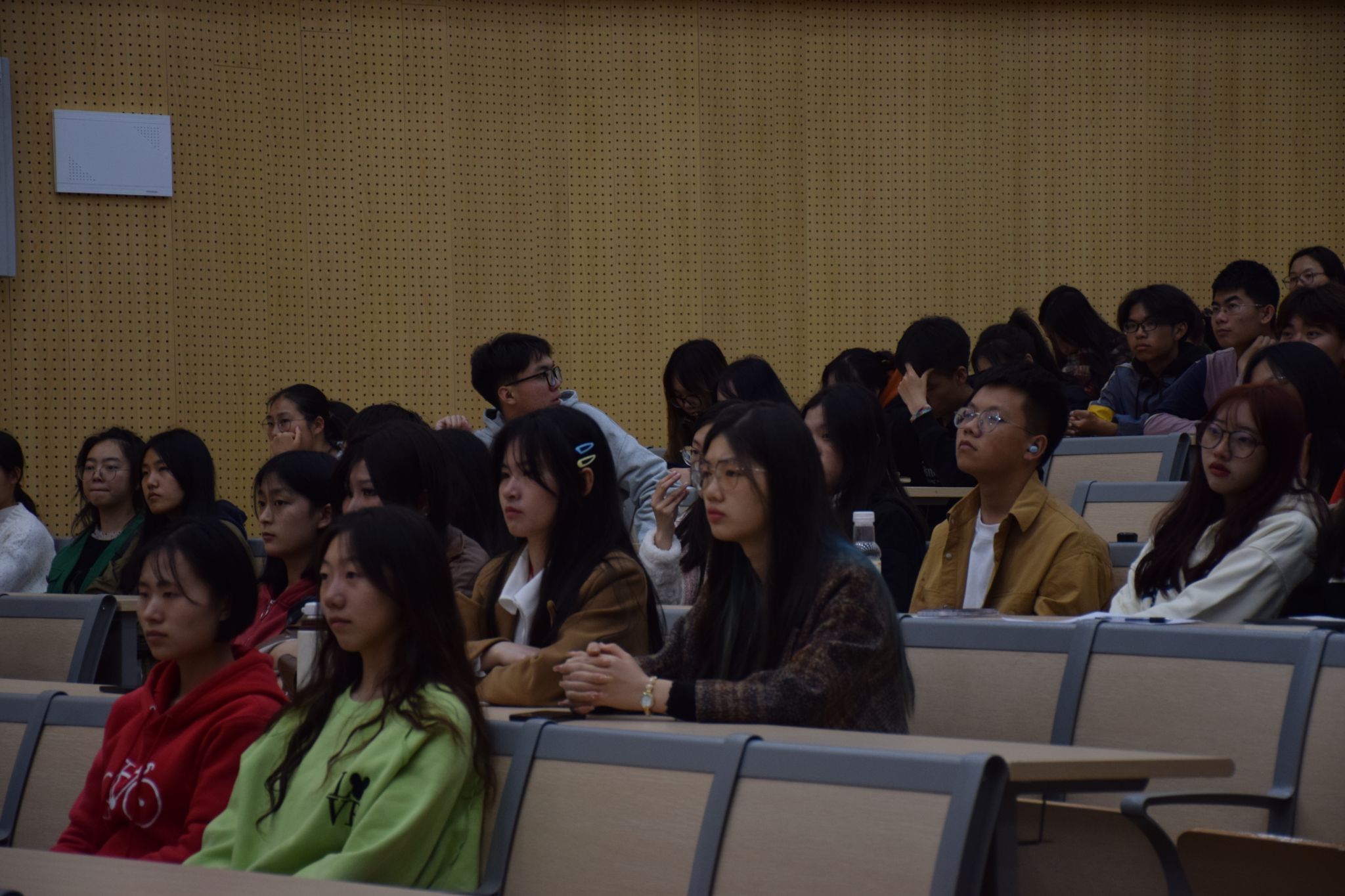 王恒绩老师接着又列出了现代大白话与文学诗词的系列对比,个中韵味更是让人叹为观止。比如现代人说“分手就不要联系”,古人说“从此音尘各悄然,春山如黛草如烟”;比如现代人说“穷单身狗”,古人说“一身清贫怎能入繁华,两袖轻轻怎敢负人家”等,让同学们会心一笑之余,感叹文学语言的美学操作。王老师指出,文学语言是语言本身的自我炫耀。把没意思的事情写得有意思,把有意思的事情写得更有意思,靠的就是文学语言及技巧,需要长时间修炼。而要想在文学这条道上走得更远,首先要耐得住孤独,多阅读,多动笔才行。