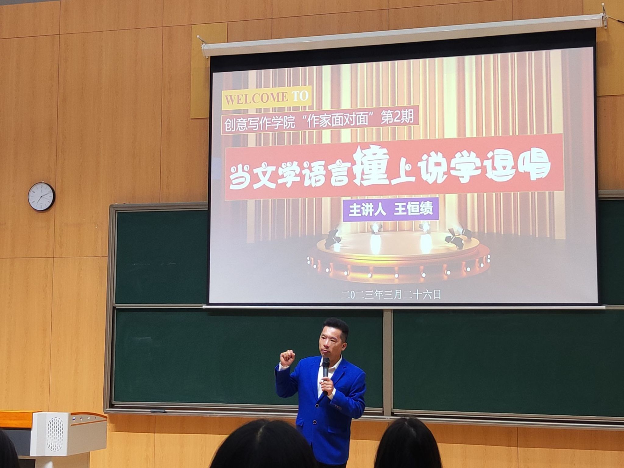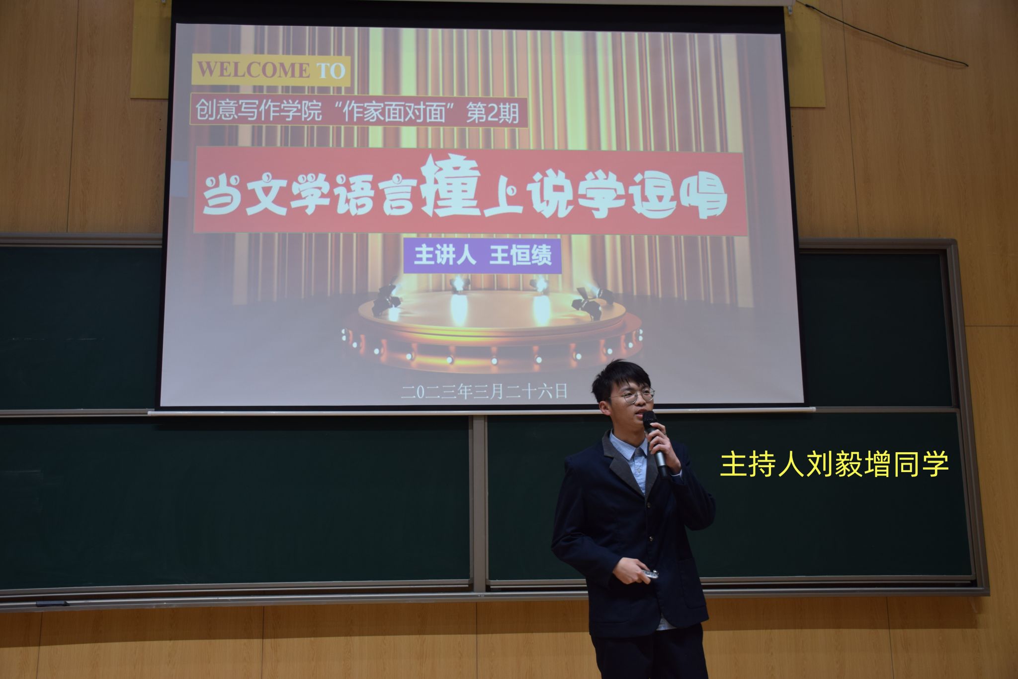 “作家面对面”是创意写作学院品牌栏目,今夜是2022-2023学年的第二期文化讲座,主要受益对象就是百人作家班学生,校内和校外的知名作家,都是该品牌讲座的邀请对象。
