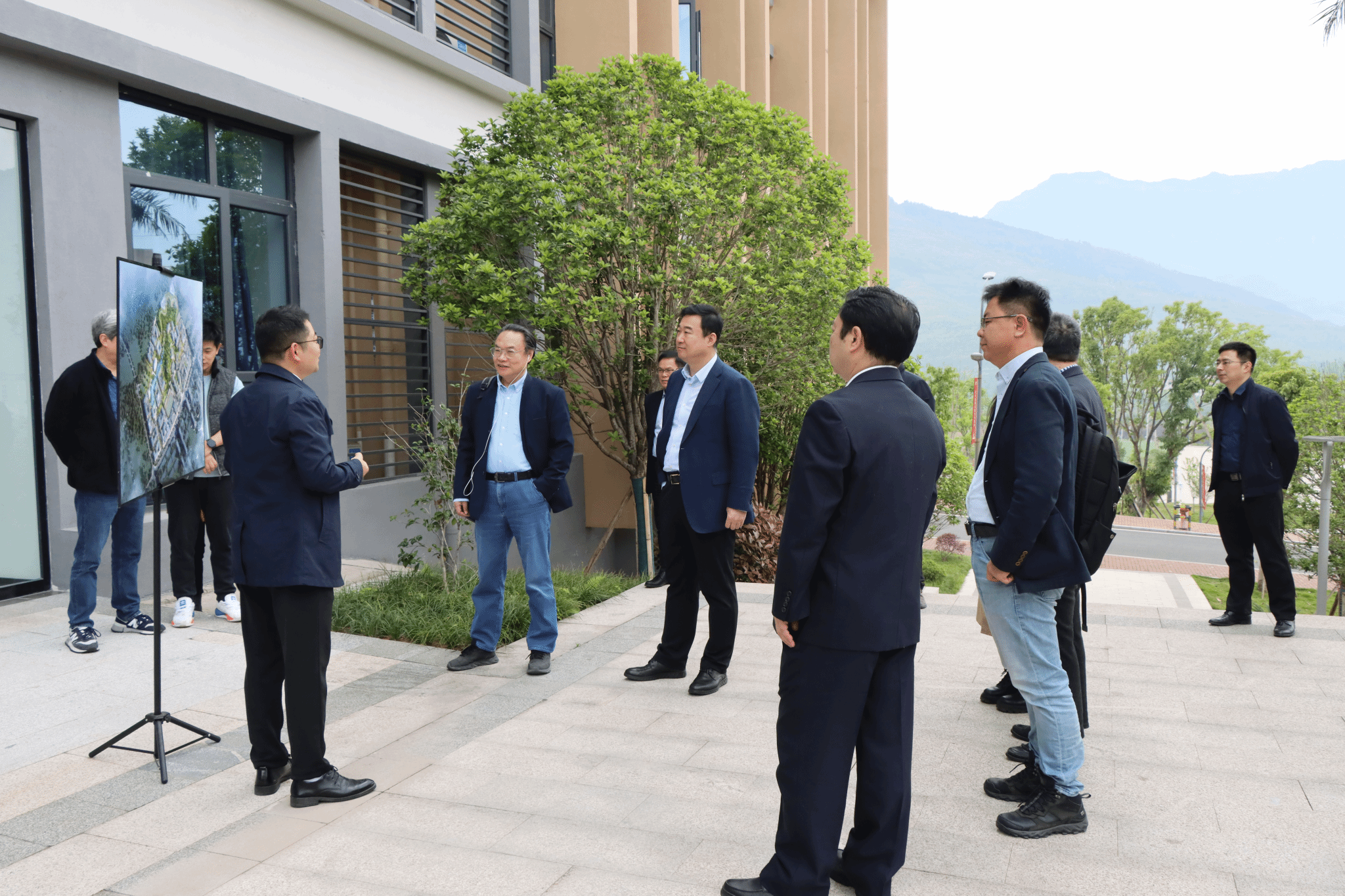 在重点实验室门口,王永周对母明江一行的到来表示热烈欢迎,向区委区政府长期以来对我校的关心和支持表示衷心感谢。他围绕校区概况、未来规划、专业布局三个方面向考察组做了介绍。