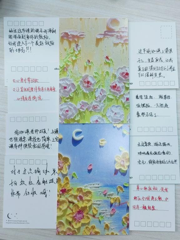 传统瑜伽体式最初来源于人们对大自然的观察。古印度瑜伽修行者无意之间发现很多动物天生具有治疗、放松、睡眠或保持清醒的本领,患病时能够不经治疗自然痊愈。在谢老师轻缓的指令中,同学们像动物一样,伸展身体——猫式、虎式体式、下犬式。在这些体式中,我们仿佛可以感受到动物们舒展懒腰时的惬意与慵懒,感受到大自然的欢快和乐趣。我们的心灵仿佛在丛林中奔走,在小溪中洗净一天的疲惫。一套完整的瑜伽序列过后,同学们睁开双眼,仿佛经历过一场酣睡过后的轻松与活力。谢沅红老师分享道:“舒缓瑜伽可以通过对身体的伸、拉、挤、压、拧,帮助我们舒展身体、调理内脏器官、改善新陈代谢;其次,配合冥想练习,来调节心智、改善不良情绪,以增进身体、心智与精神的平衡;最重要的是瑜伽所倡导的练习原则及生活方式,引导我们抵御自身的负面情绪以及外环境不良因素产生的消极作用,培养个体冷静客观的良好心态及善良自信的生活态度”。不少同学在最后的采访中写到“做完之后整个人都轻松了不少”“我中间好像都睡着了”“仿佛经过洗涤一样”。同学们的良好体验是最佳的活动名片。