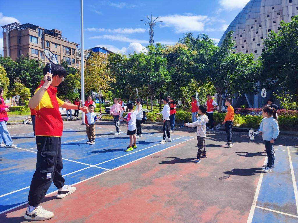 为进一步推动全民健身活动的广泛开展,弘扬体育文化相关知识,认真贯彻落实全民健身和健康中国的国家战略,落实以人民健康为中心的发展理念。大健康管理学院青年志愿者协会“股肱力”体育文化志愿服务专项支队特开展“一‘綦’运动·‘羽’众不同社区儿童羽毛球学习计划特别活动”。3月19日,“股肱力”体育文化志愿服务专项支队走进通惠社区,通过理论宣讲以及重点教学的方式,让更多的小朋友学习羽毛球的相关知识,把内育理论学习强化体育文化知识和外育运动精神增强运动能力相结合,集两者之合力共同赓续体育文化精神,彰显羽毛球运动风采。