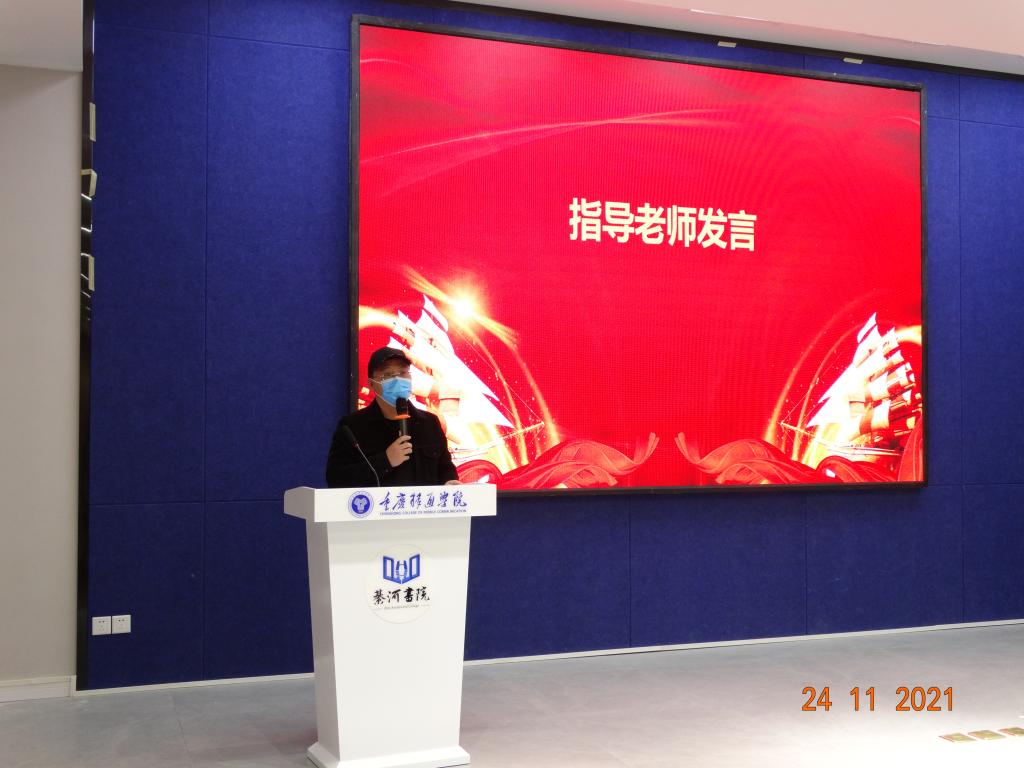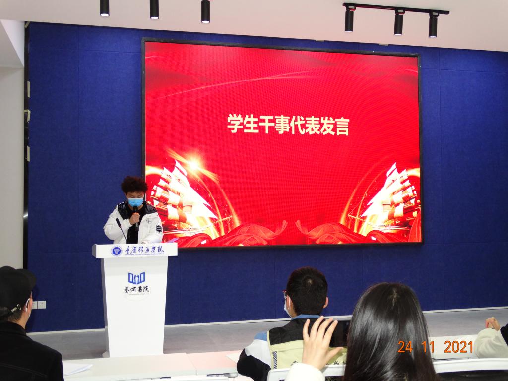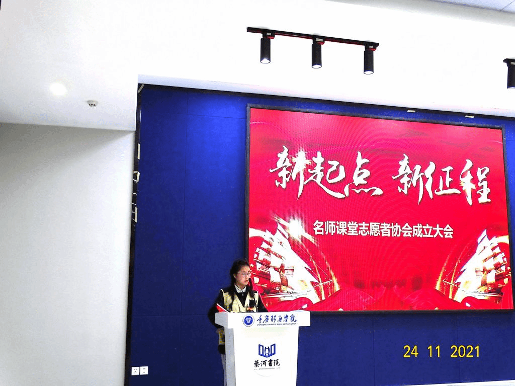 刘方旺老师宣读《重庆移通学院名师课堂志愿者协会2021-2022学年学生干部名单》,并表达了对新任干部的殷切期望。号召协会全体成员在干部的带领下互相扶持、彼此配合、共同成长。
