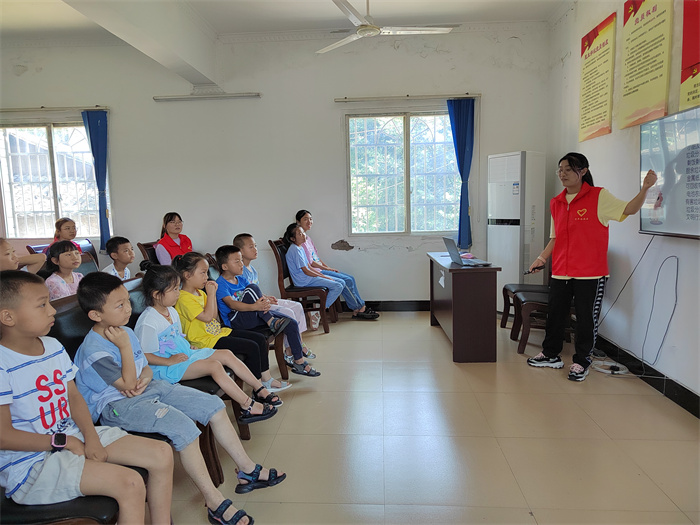 随着经济的快速增长、城市就业机会的增加,越来越多的青壮年们走入城市,在广大的农村也随之出现了一个特殊群体——留守儿童。他们正处在成长的关键时期,由于在成长中缺少父母的关心呵护,极易产生一些认识、价值上的错误,心理健康容易出现问题。儿童是祖国的未来,是社会的希望,他们的健康成长关系到祖国的发展。为此重庆移通学院“完满心语”教育关爱服务团于7月7日在綦江区玉龙村围绕二十四项积极的心理品质开展活动,将心理健康问题有机的融入到孩子们的课堂上,与玉龙村的小朋友们一起敞开心中一片天,放飞心理健康梦。