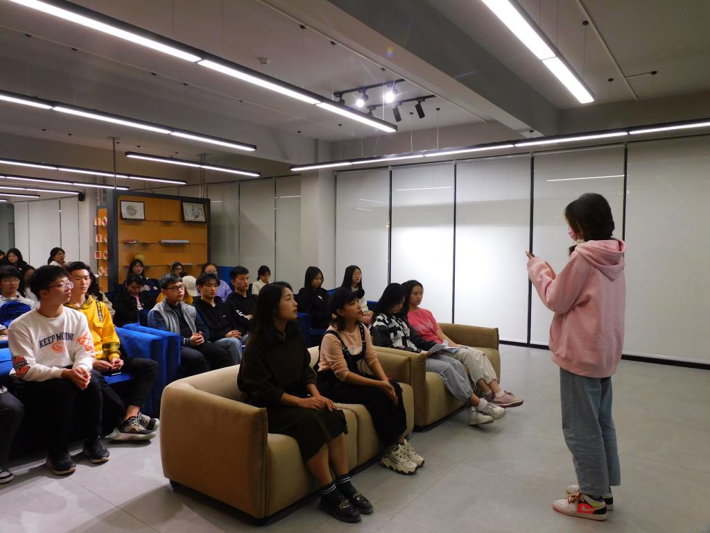 各个剧本的编剧分别向大家阐述故事梗概,用简洁明了的话语浓缩出故事精华。更有编剧讲述了自己的创作理念,唐家億同学作为《清澈的爱只为祖国》的编剧,在创作过程中结合时代背景,融入爱国主题和民族精神,展现了当代大学生应有的优秀思想觉悟,故事情节明暗线穿插,引起了众多同学的兴趣。