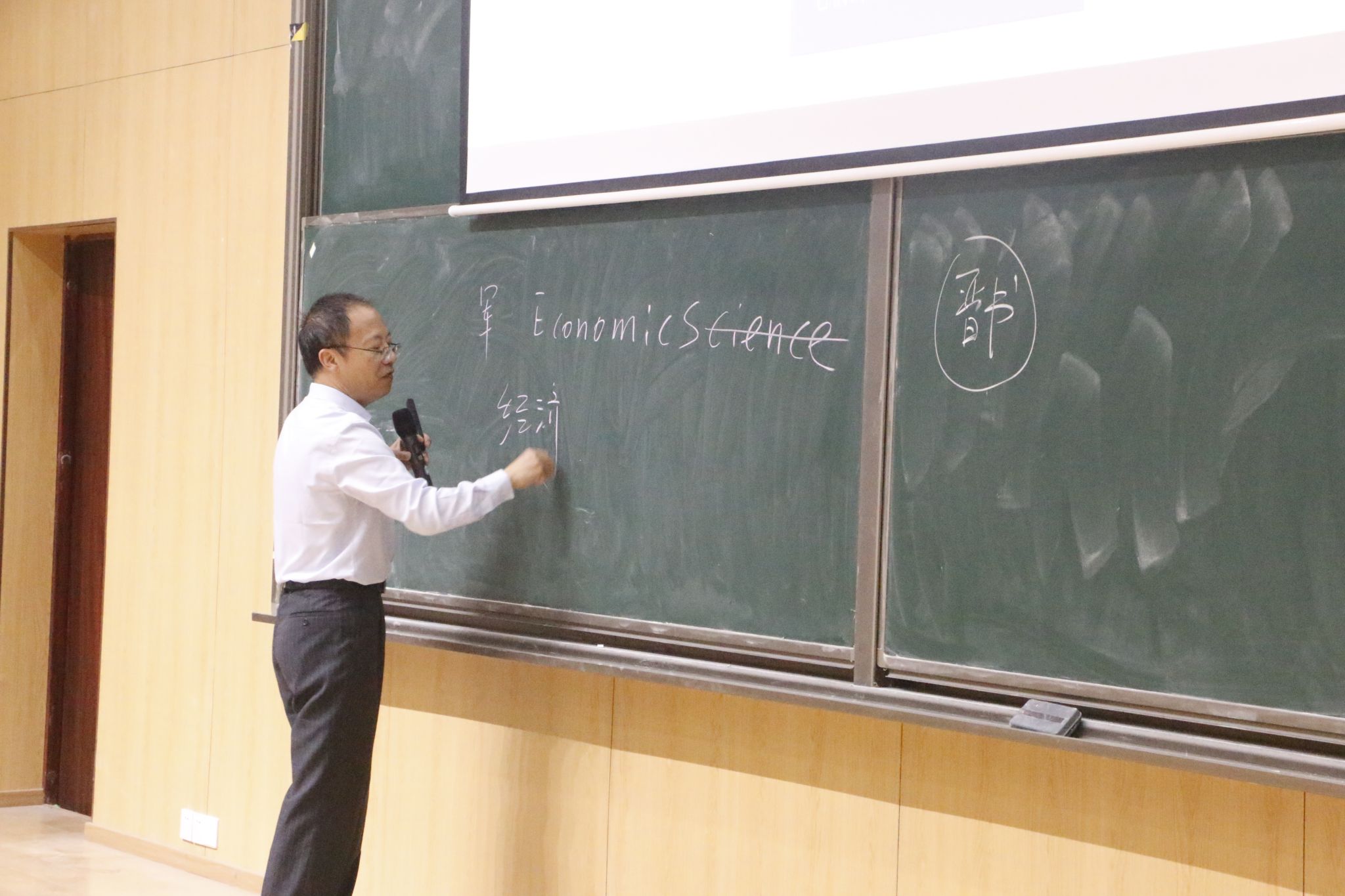 “什么是学问?”李政军教授最后提问道。同学们回答说学问就是知识,但是李政军教授解释道:“学问的近义词是科学,学问是有关经济的科学,它是问题与方法的清晰表达,是过程与结果的系统呈现。”经济学如果只谈商品而不向前谈到人类的动机,它当然不是科学。即使能谈到人类的动机而想要以统计的平均数去研究,它不是科学,充其量不过是拟科学而已。同学们全神贯注,受益匪浅。