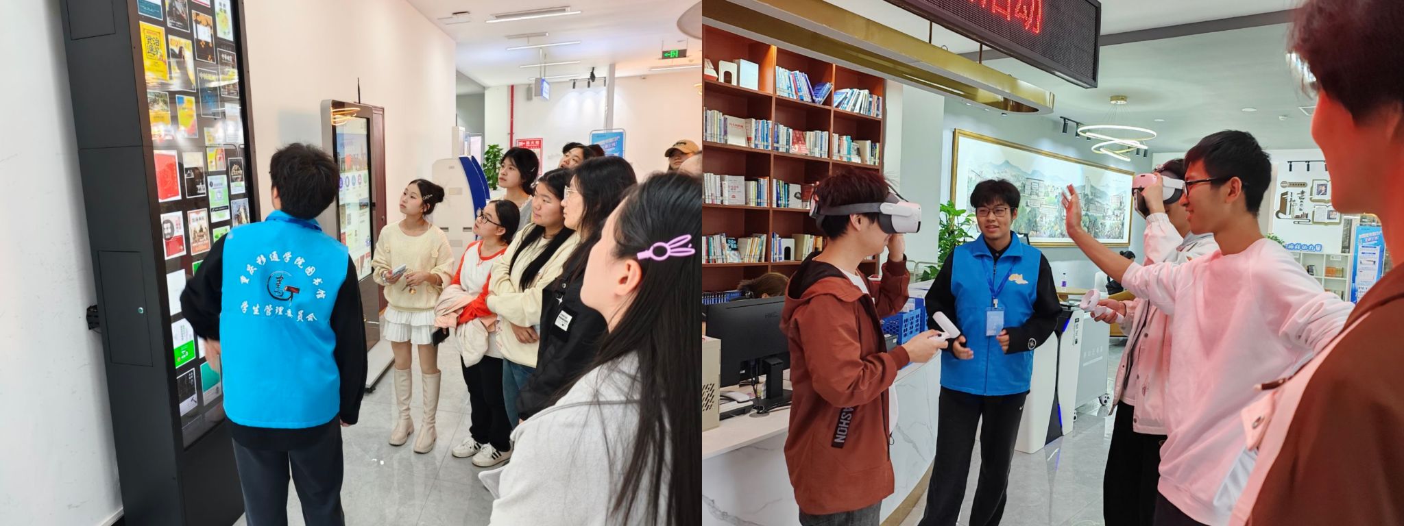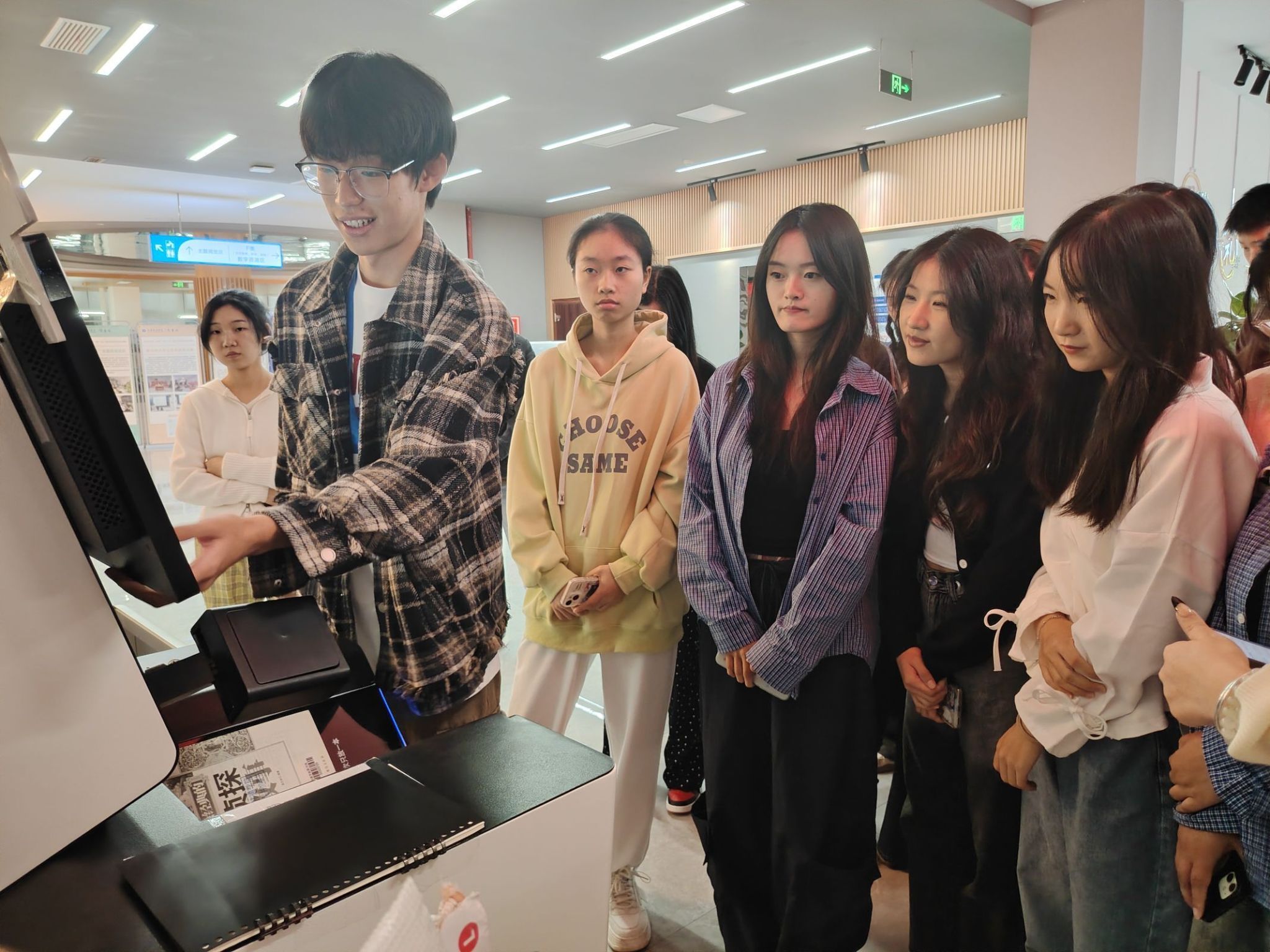 26日上午九点,图书馆内人头攒动,戏剧影视学院的新生们怀揣着对知识的渴望和对大学生活的憧憬,纷纷前来参加。图书馆的工作人员热情接待并为他们讲解了图书馆的馆藏资源、借阅流程、电子资源使用方法等基本信息。同时,还演示了自助借还书机、图书查询机、电子书借阅机以及沉浸式体验了VR阅读机,通过视觉、听觉、触觉来感受科技带来的震撼,享受阅读带来的快乐。