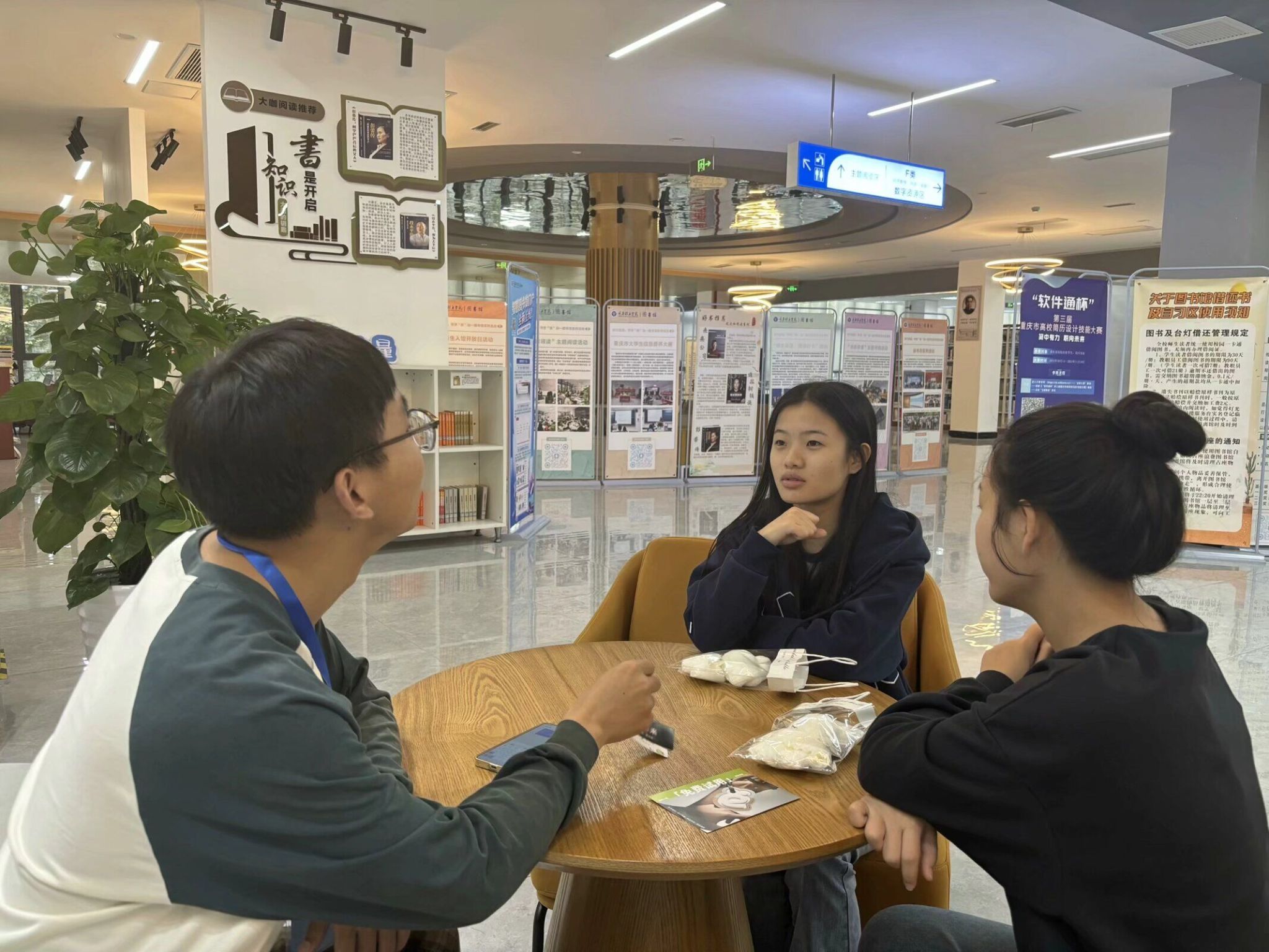 了解完图书馆的基本信息后,剧本杀学院的工作人员跟大家也进行了互动,给小萌新们介绍了海龟汤规则。在一片欢声笑语中,小萌新们便开始在图书馆里去探索答案,同学们穿梭书海,寻觅蛛丝马迹,最终找到答案的同学们也是拿到了属于自己的“战利品”。