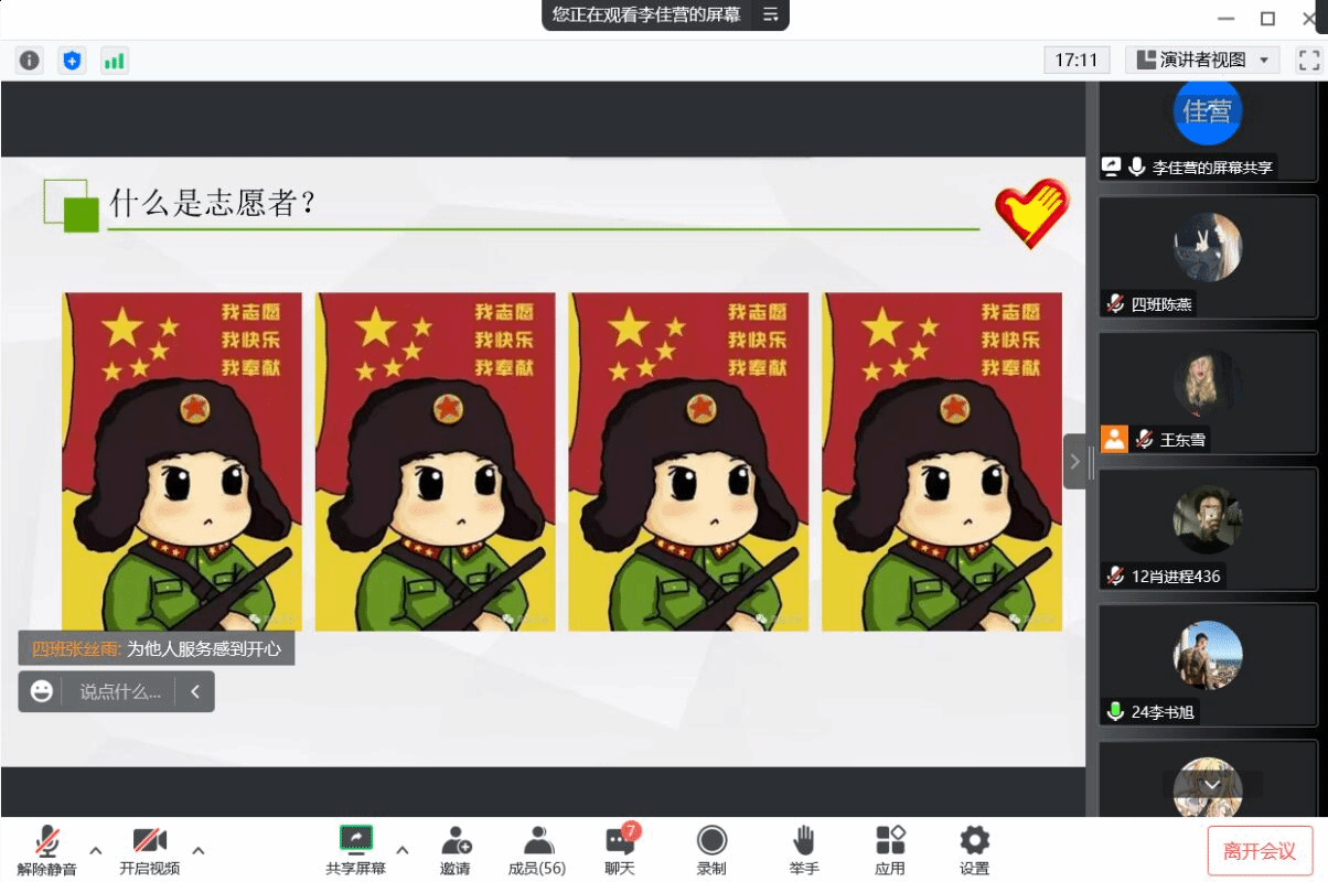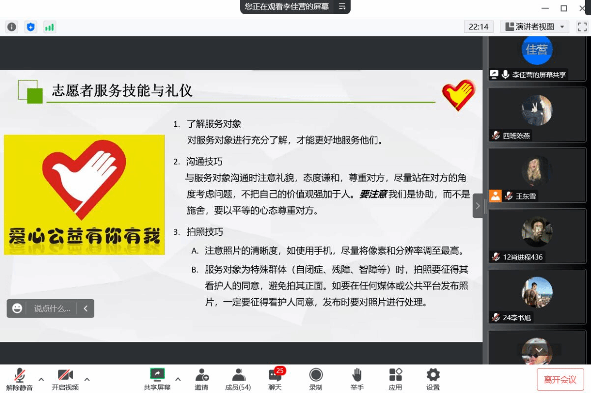为了提升学校青年志愿者的思想素质,提高办事效率,提升志愿服务质量。“伐木累”通信学院志愿者培训志愿服务专项支队在线上开展“志愿一份心、公益更精彩——花果培训”基础班培训活动,2022级通信与信息工程学院各班级派出两位代表参加此次培训。