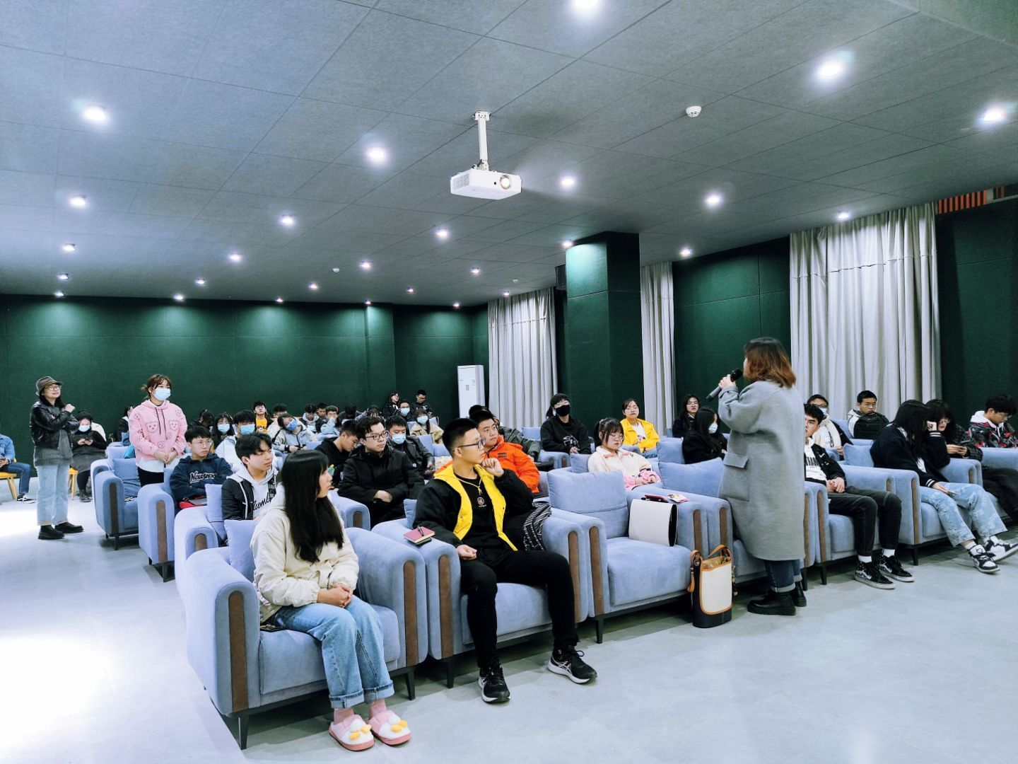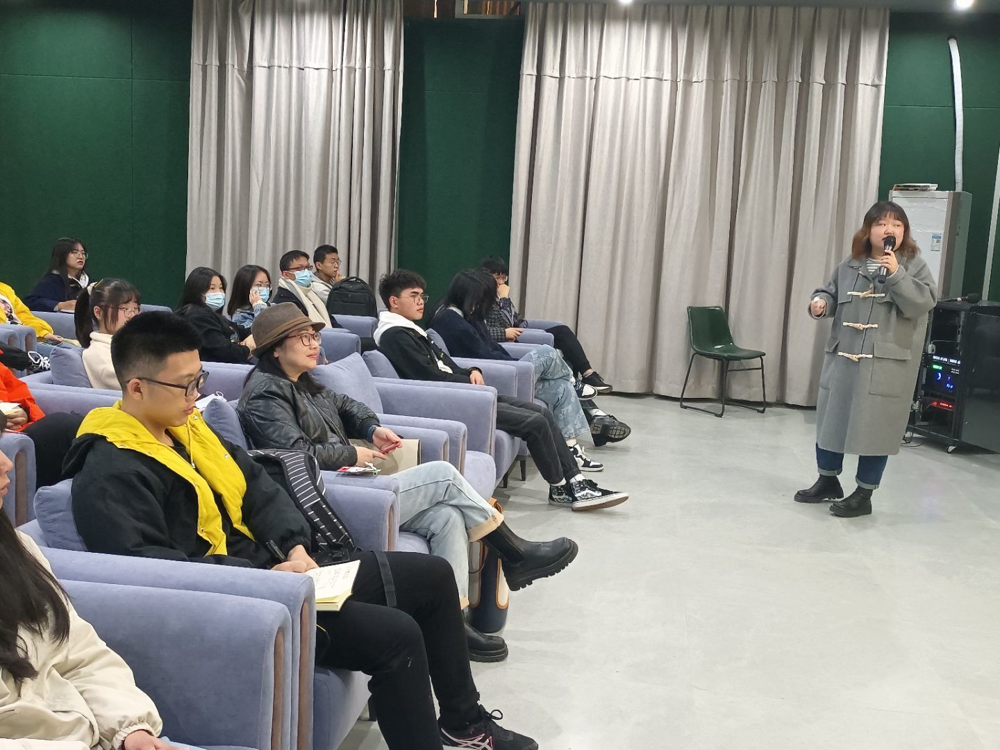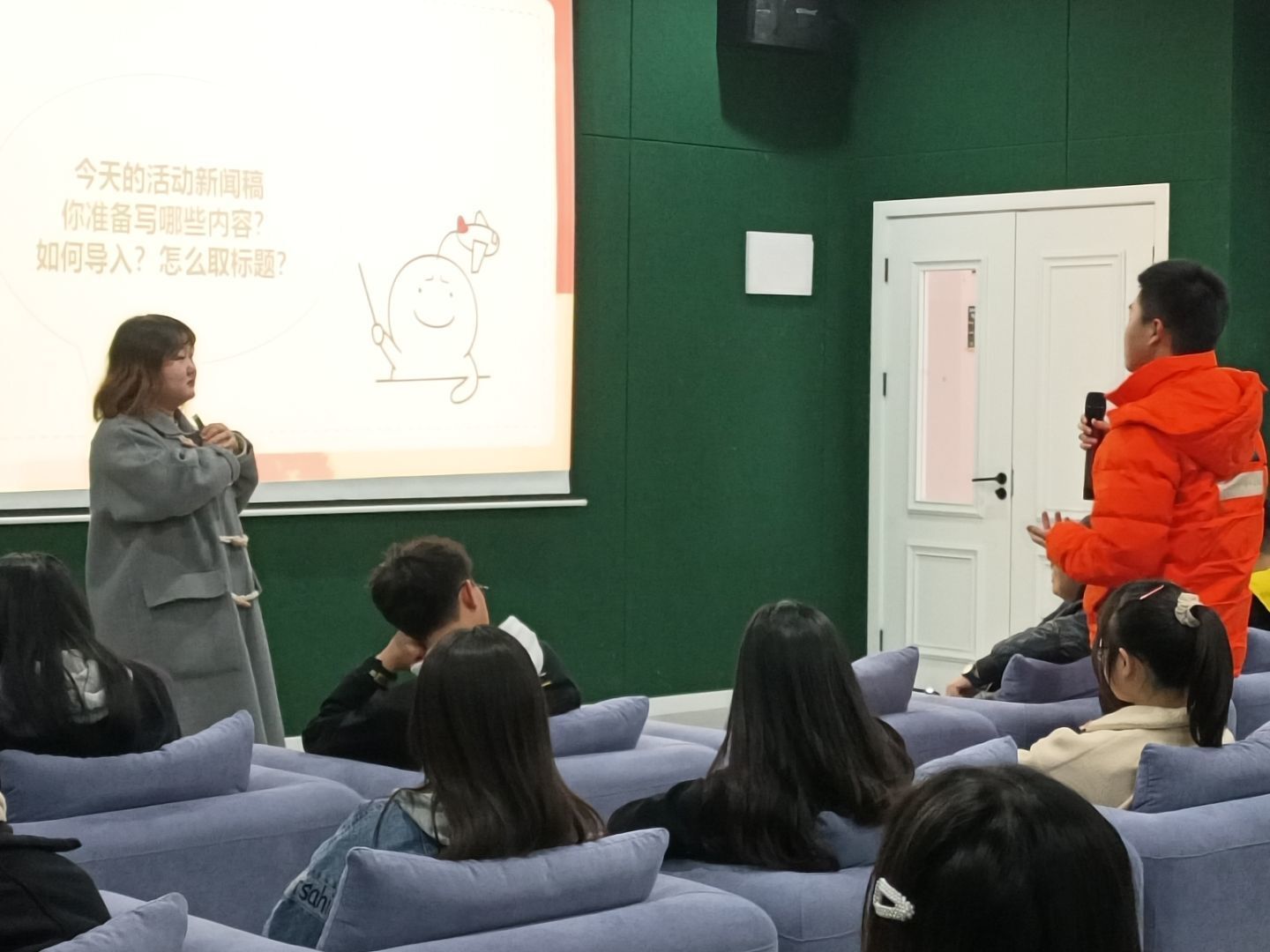 夏曦老师向大家介绍了自己写过小说,做过杂志编辑,也做过新媒体内容和运营,多次写过10W+的爆款文。此次接到文学社的邀请后,她愉快地答应了,很愿意为同学们写作校园新闻提供一些思路和方法。