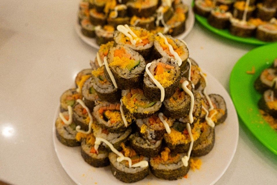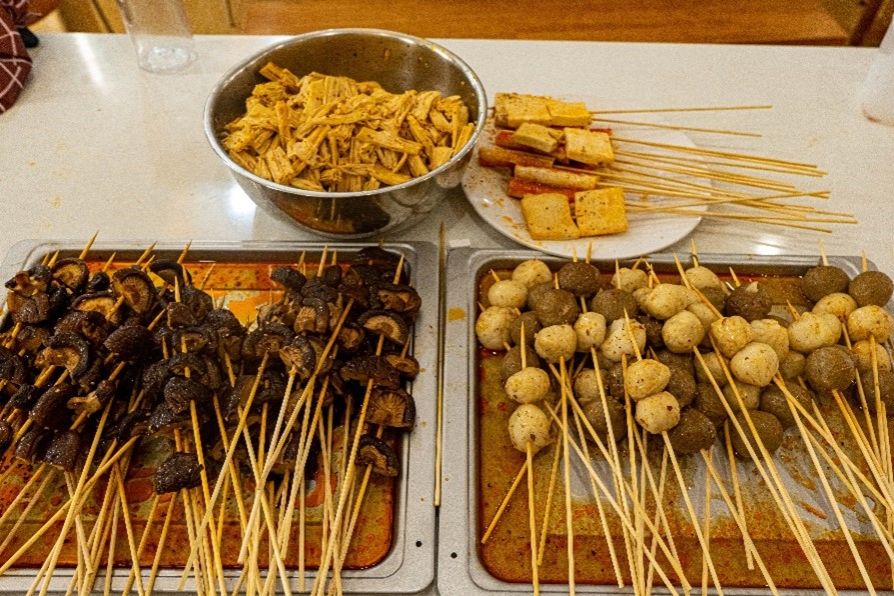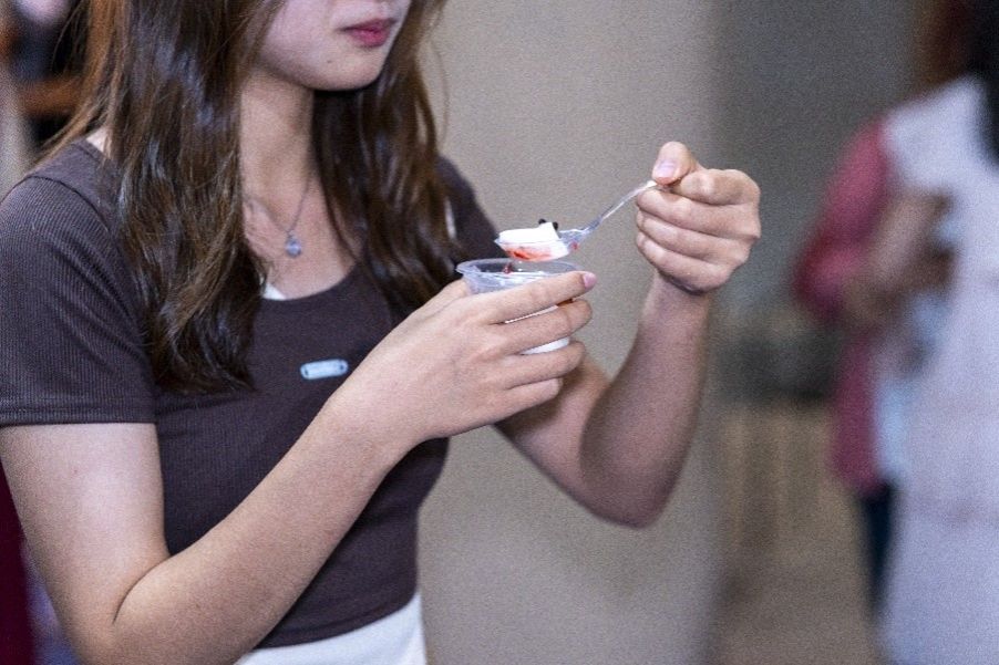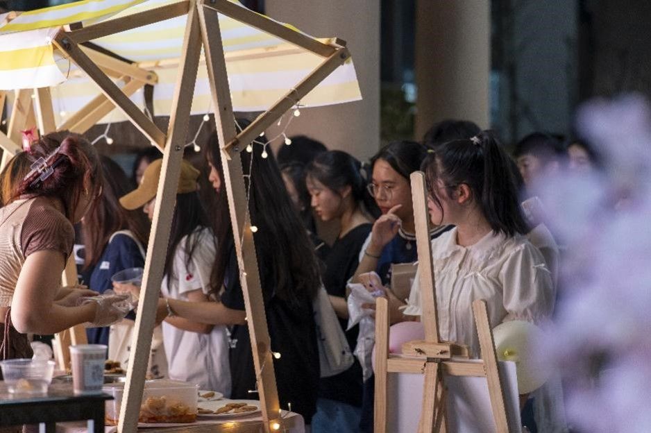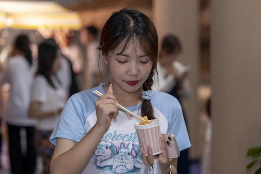 游戏在进行,美食也不能落下。九月的天空湛蓝如宝石,秋老虎的来袭,让这个开学季不太凉爽,一杯沁人心脾的加冰酸梅汤凉爽了同学们游戏过后的燥热,大汗淋漓之际,清凉的酸梅汤,凉到了心尖尖上。奶香浓郁,甜而不腻的黄油味曲奇饼干、麻辣鲜香的钵钵鸡、美味的寿司,入口即化的双皮奶满载美食协会所有的用心和美好的祝愿,让味蕾得到享受,为同学们增添能量。交错的人群,手中拿着各种小吃,好不快活。现场的同学们沉浸在美食的享受中,属于生活的烟火气息也沾染了此刻的校园,让同学们身心都得到放松,感受到平凡的幸福。