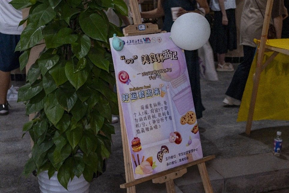 始于初秋,从远而方来,跨越山海,奔赴下一场诗与远方;青春在这一刻绽放,听风遣,从心所向。新学期、新起点从移通秋天的第一个美食节开始,起新一程欢愉,悦下一程绚烂。学期伊始之际,新同学们带着青春蓬勃的朝气和远大的志向来到大学校园,对大学社团生活充满好奇与期待。为丰富移通学子的课余生活,激发新同学们的热情,放松平时学习的压力,美食协会于9月10日在观云书院举办了“∞”美食环游记活动,以美食为载体,用游戏促进交流,在移通感受不一样的大学美好。