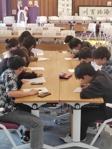 活动开始后,大家或低头沉思,或相互讨论,每个人都带着对知识的渴望和对胜利的憧憬,整个会场陷入了一片紧张而有序的氛围中。他们或奋笔疾书,或低头思考,每个人都在尽全力展现自己的数学才华。他们通过不断尝试和修正,逐步完善,最终提交出令自己满意的答卷。