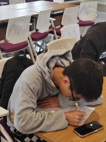 答题完成后,同学们如释重负。工作人员根据答题时间和正确度进行评判,评选出获胜选手,他们的出色表现得到了现场各位同学的掌声和赞叹。活动即将结束时,还有部分参加活动的同学意犹未尽,他们仍全神贯注,认真解答未答完的题目。