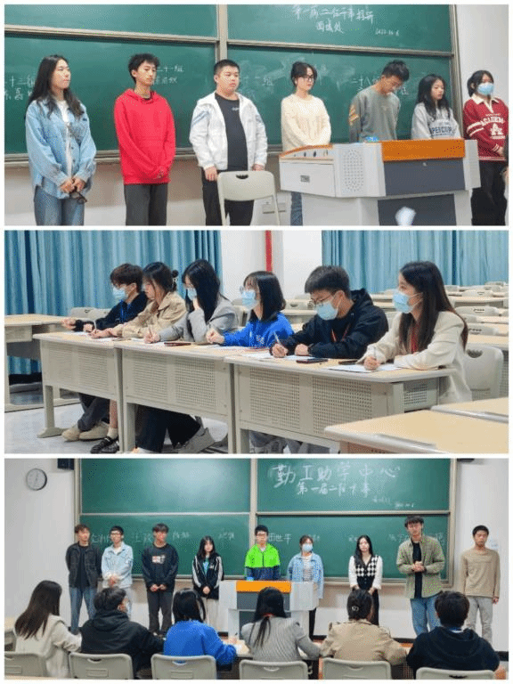 初试环节即将结束的时候,勤工助学中心的指导老师温宗航老师走进来说还有6位学生,大家还面不面?所有部长兴奋地说:“面,必须面。”令所有人没有想到的是,走进来的是第一届第一任的“老”干事们重新站回了面试的讲台,给了所有部长一个返场惊喜,2021年作为新干事加入勤工到2022年作为“老”干事留任这个组织,他们想用自己的方式守护勤工。作为第一届第一任的干事秦进学长说:“感谢勤工助学中心给了我这样一个锻炼机会,去年勤工的面试,是我人生第一次登上面试台,在勤工助学中心的一年里,我在这个有爱的大家庭里学会了坚持与自信,未来不管如何,我将以我的方式共诉我与勤工的故事。”