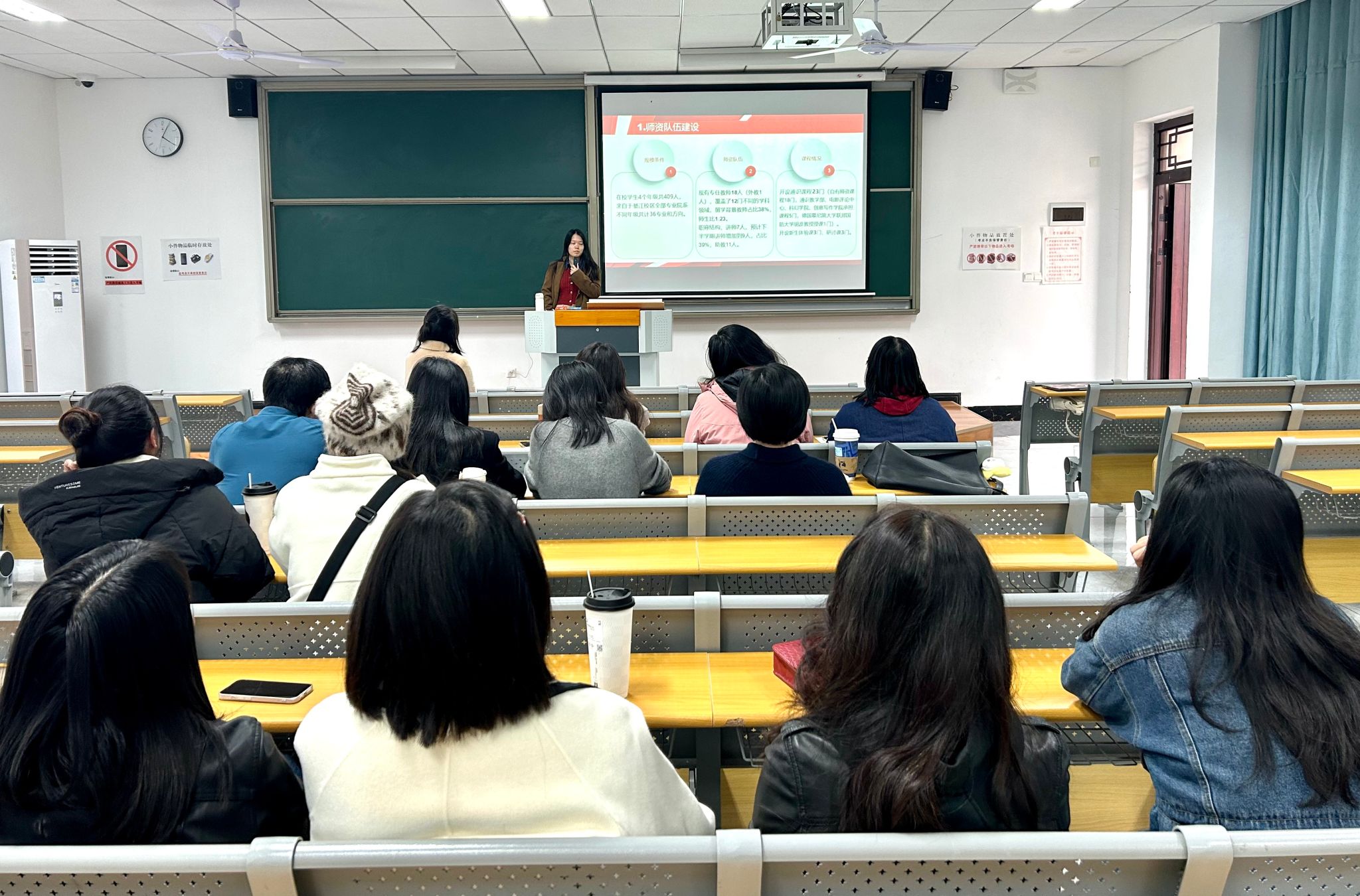 首先,黎老师介绍了远景学院师资队伍的构成特点,强调了多元化与专业化的结合在提升教学质量中的关键作用。她指出,学院构建了一支充满活力、结构合理的教师队伍,通过构建教研梯队、师资赋能、坚持双院联动、教学教研齐头并进,为高质量教学与研究奠定了坚实基础。在团队管理与培养方面,黎老师分享了远景学院采取的一系列创新举措,有效提升了教师团队的凝聚力与专业素养。谈及通识教学与研究,黎老师强调了通识教育在培养学生综合素质中的重要作用。她详细介绍了远景学院在通识课程设置、教学方法创新以及学生评价体系等方面的探索与实践,展示了学院在促进学生全面发展方面的显著成效。最后,黎老师还就重点工作落实进行了分享包括课程改革、教学质量监控以及科研项目申报等关键环节。她提到,通过明确目标、细化任务、强化执行,远景学院在各项重点工作中均取得了显著进展。