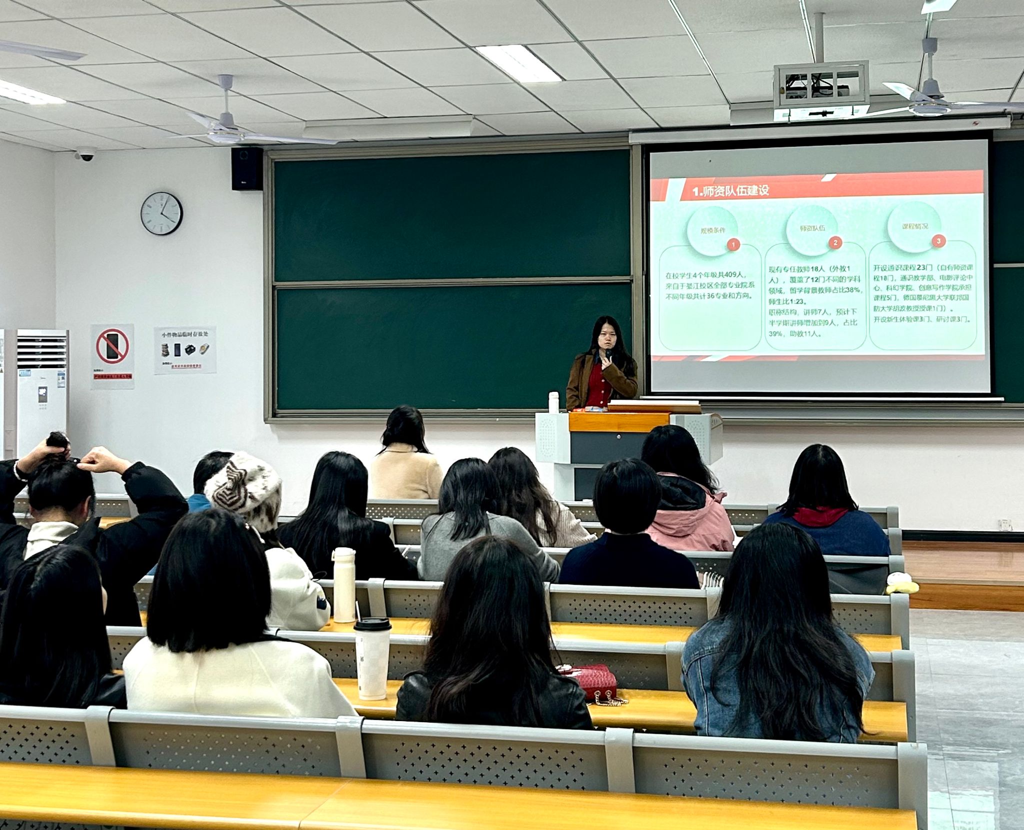 会议当天,远景学院的黎美茜老师作为主讲嘉宾,对远景学院基础课程教研室的工作进行了全面而细致的分享。黎老师从师资队伍构成、团队管理与培养、通识教学与研究、重点工作落实四个核心方面展开阐述,为与会者提供了宝贵的实践经验与思考。