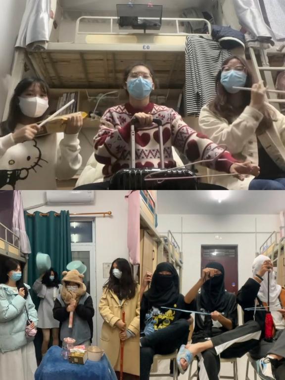 遇见了有趣的人,一起做事情会更有趣。和室友们拿上身边有限的“乐器”进行配乐表演,拍视频时候的搞笑场景是会记忆深刻的,快乐是会传递的。因为有你们的参与,视频才会更有意义。