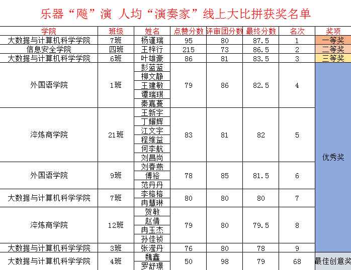 各类参赛作品通过抖音点赞量的排名高低和评审团打分后产生最终排名并颁发奖品奖状,此次活动评选出最具创意奖1名、一等奖1名、二等奖1名、三等奖1名、优秀奖6名,至此活动圆满结束。