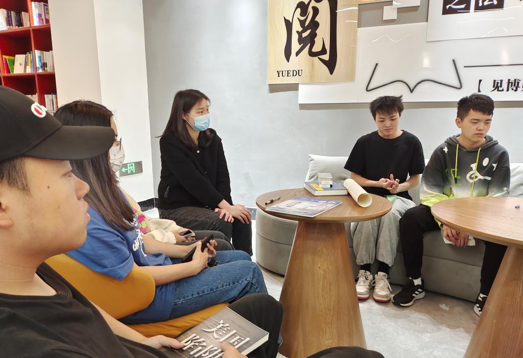 2022年4月15日下午14:30,大数据软件学院全生异科导师张正光、崔向灵、王秋月三位导师联合举办的趣味读书活动在学校图书馆一楼开展。活动举办的前一周,导师带领本次参与活动的同学提前到图书馆选择自己相对感兴趣的图书提前阅读,同时根据同学们的兴趣点对书籍进行了推荐,为本次趣味读书活动做好充分准备工作。