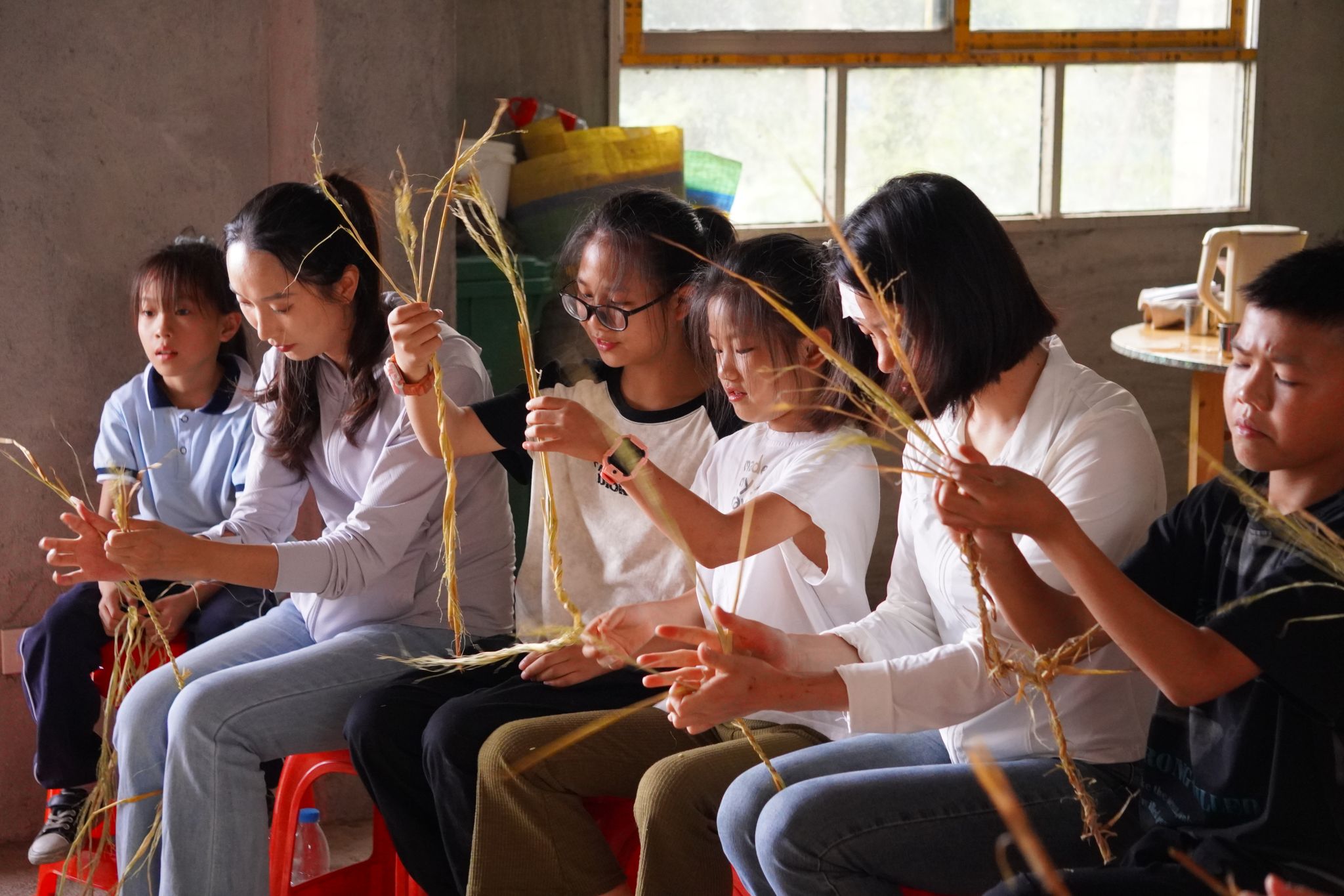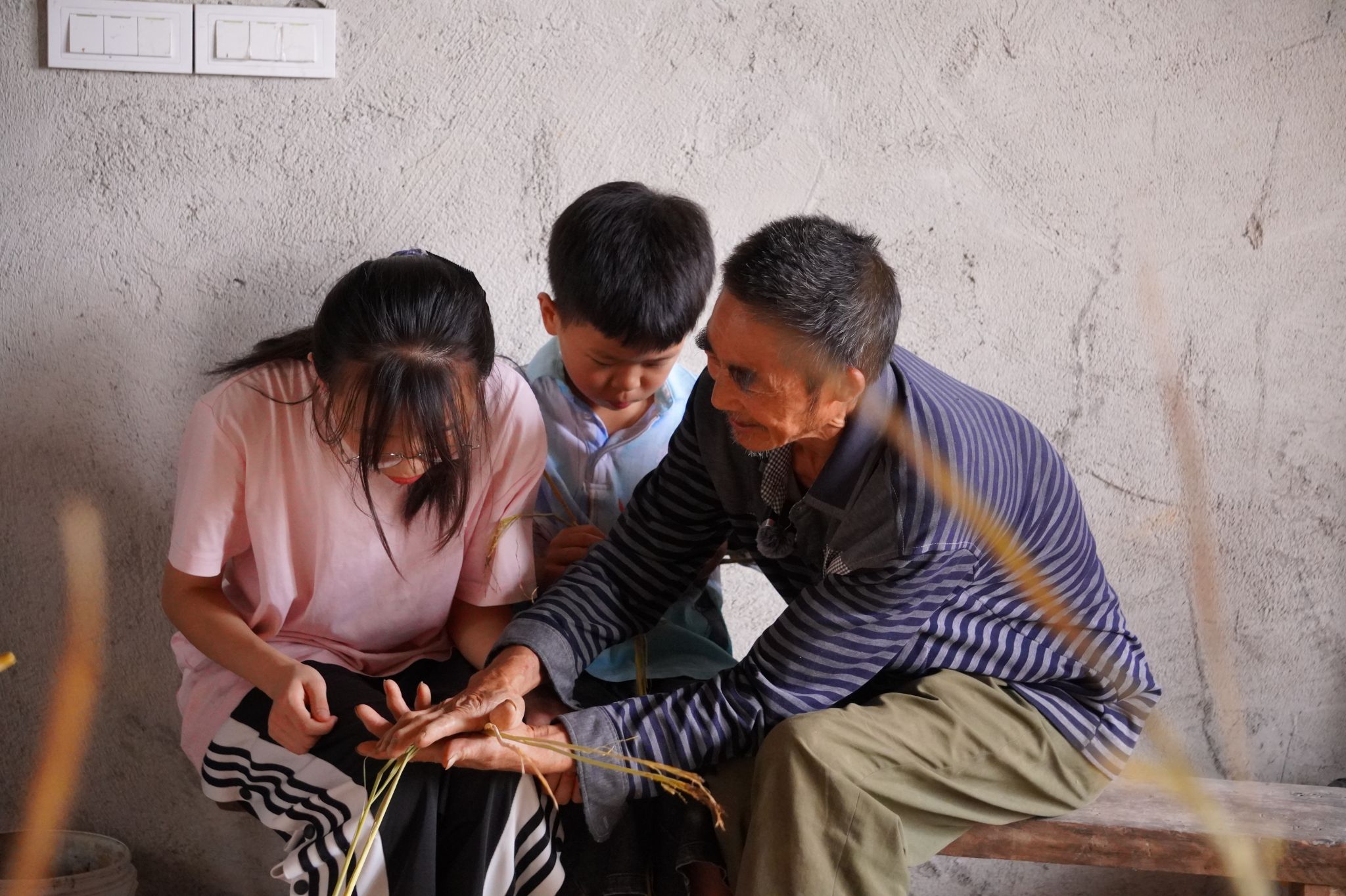 草鞋,连接心与心。红军与百姓,用草鞋编织起深厚的情感纽带。百姓的稻草,战士的手艺,每一次编织都是对彼此的深情厚意。在大致了解完草鞋的编织过程后,队员们带领小朋友们一起编织草鞋上手实践。为村民们在大家上手实践时,用边讲解边上手实践的方式,使得大家迅速吸收编草鞋的方法。实践学习如何编鞋,,旨在让参与者亲身体验革命时期的艰苦条件,学习红军艰苦精神,并激励他们发扬党的顽强意志。