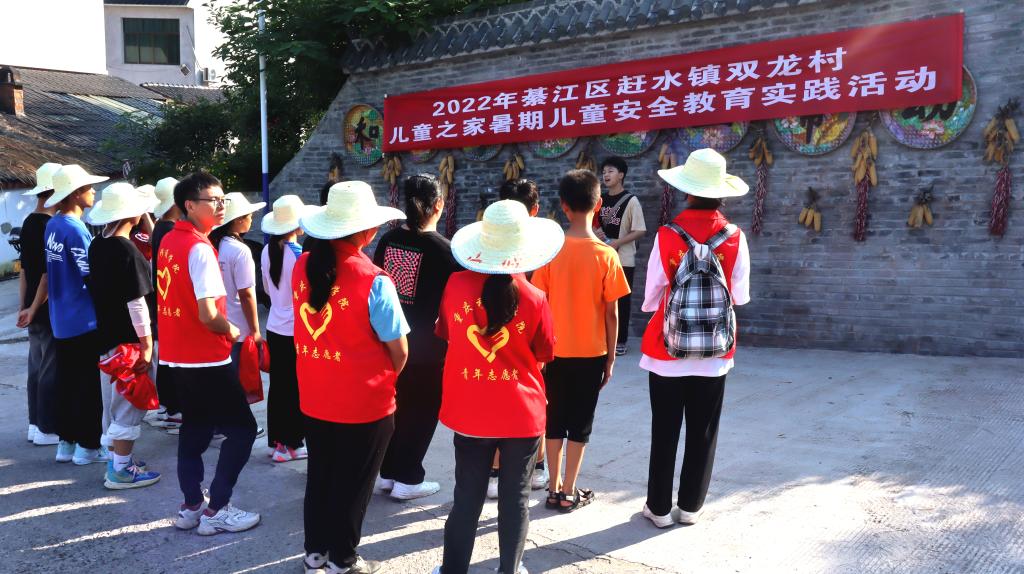 到达双龙村后,村委书记王梅和志愿团成员们组织村民进行习近平新时代中国特色社会主义思想宣讲和学习。在宣讲中,王梅书记根据习近平总书记对乡村振兴战略的重要指示,介绍了双龙村的产业发展,“致富修路,我们还将拓宽交通路、产业路,让交通发展带领乡村振兴走向深处。”紧接着,双龙村专职干部与志愿者们组织村里的孩童,进行暑假安全教育的宣讲,志愿者们也用个人所学和所会,教育孩子注意防溺水安全、交通安全等等,为村里的乡村振兴守护好希望。