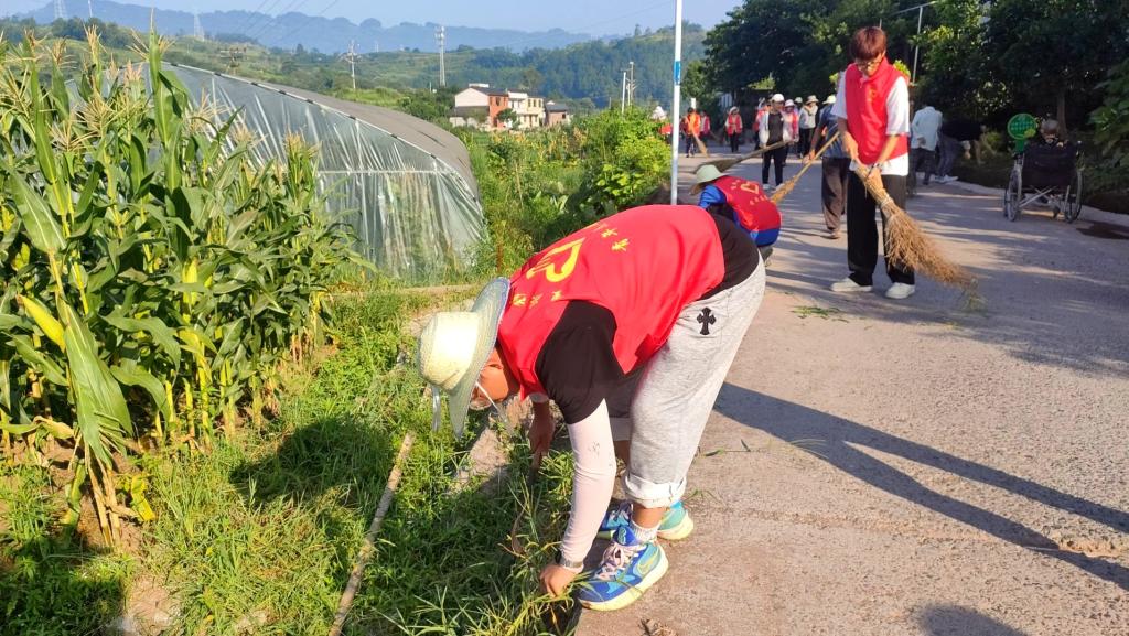 乡村振兴不仅要进行经济、产业上的振兴,还需要进行思想文化、生态环境的振兴。在与村民的交流中,志愿者们感受到村民对乡村的认同感和归属感,积极响应和全力支持乡村振兴战略实施,如村委每个月都会组织村民进行乡村振兴的相关活动,增强村民共建新乡的参与度和工作力度。促进团志愿者们的到来,正是双龙村开展村居环境治理的日子,大家撸起袖子、卷起裤腿,对稻间、池边、交通要道两侧的杂草进行清除打扫,晴日当空,烈日当头,志愿者们不怕苦不怕累,认真参与到生态环境保护当中,为建设美丽乡村双龙贡献了志愿力量。