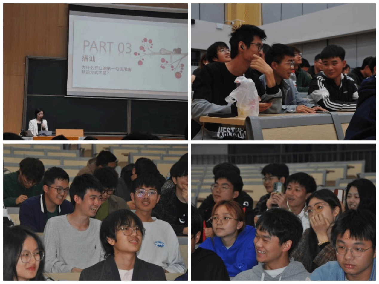本次讲座受到了同学们积极、热情的反馈,在学习搭讪技巧的同时也能够树立同学们正确的择偶观和爱情观,相信在以后的择偶或交友实践中,同学们能将这些搭讪技巧运用于生活实际中,获得更加良好的人际关系。