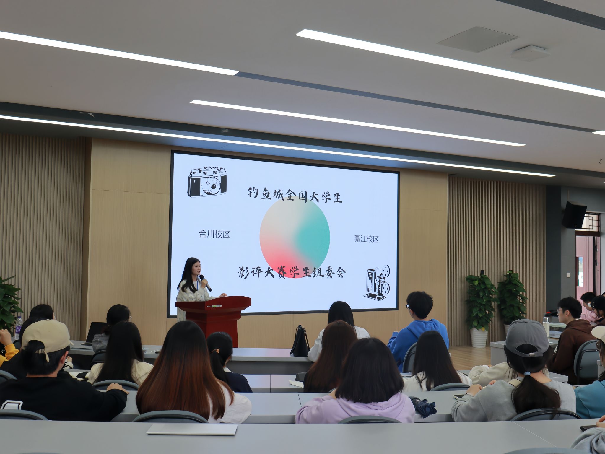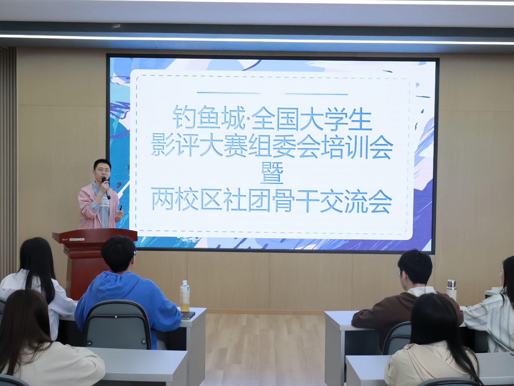 组委会总负责人钟家治老师对本次见面会进行了简单介绍,电影评论中心的各位指导老师也一一与同学们见面,本次培训会还邀请到合川校区电影协会优秀社团骨干与同学们进行交流。