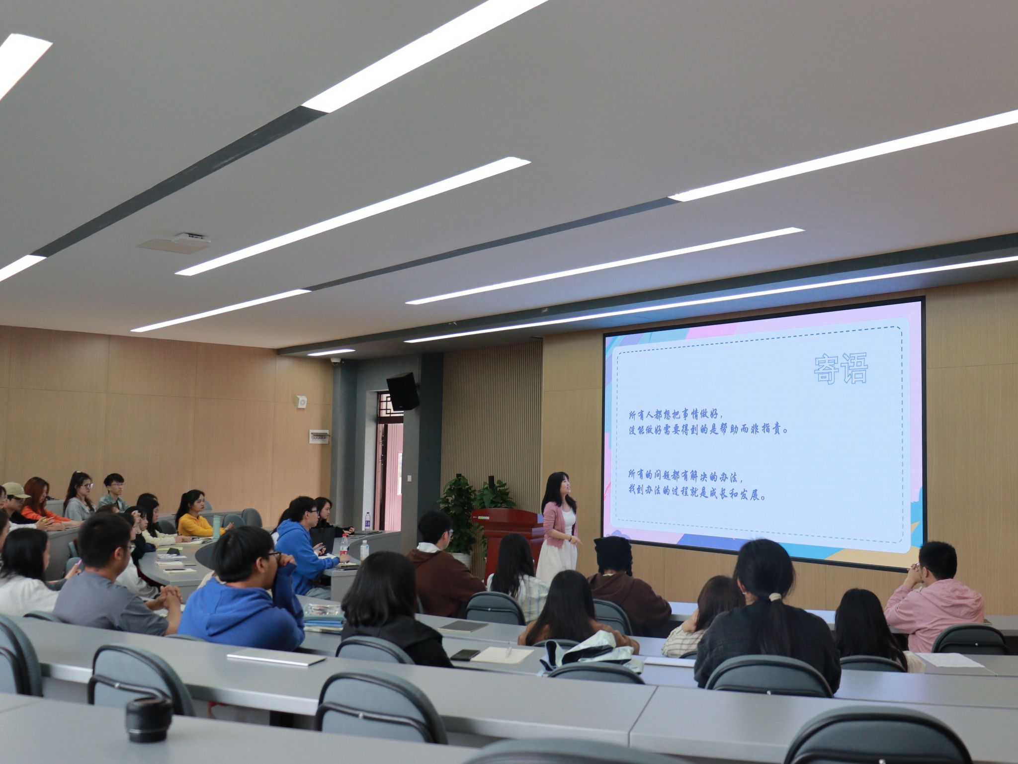 刘力铭同学分享了自己加入电影协会的每段路程,启程、蜕变、荣耀和回归之路。不同的路程,有着不同的经历和收获。他鼓励大家勇于参加电影的相关活动,大方地展示自己,敢于不断尝试和突破。也正是因为这样,他在每段路程上才能不断成长,不断进步,成了更好的自己。