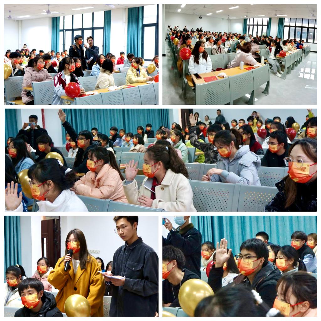 幸与盛世,正当奋进,而不可忘历史。以一段抗美援朝视频为开端,战火纷飞的年代展现在同学们面前,铭记历史,礼赞英雄是当代青年所肩负的使命。主持人围绕视频内容开展了有奖竞答活动,同学们踊跃参与,以视频与问答结合的方式加深了众多同学对过往历史的了解以及对老一辈革命先烈献身精神的触动。再则,通过主持人介绍神舟十号载人航天的伟大成就与“更高、更快、更强、更团结”的奥运精神种种,由过往到当今,无不让华夏儿女为之自豪,新时代,新青年,当锐意进取,扬红旗新风!