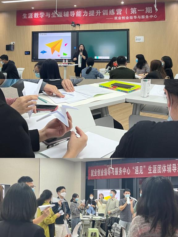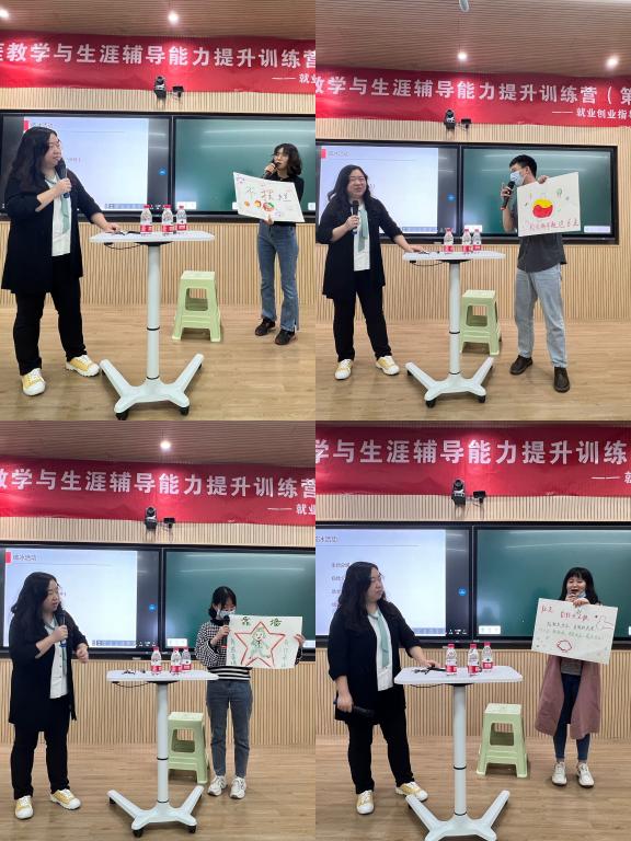 通过“折纸飞机”“绘画人生线”“打乱重组”等活动,胡晓老师让参训学员体验到如何带领团队成员在短时间内从彼此陌生到团队熟络,得到打破沉默,热闹氛围的效果,并且让学员领悟到交流沟通中听、说、执行的原则和技巧。多个活动寓教于乐,为接下来的生涯理论教学环节取得了良好开端。