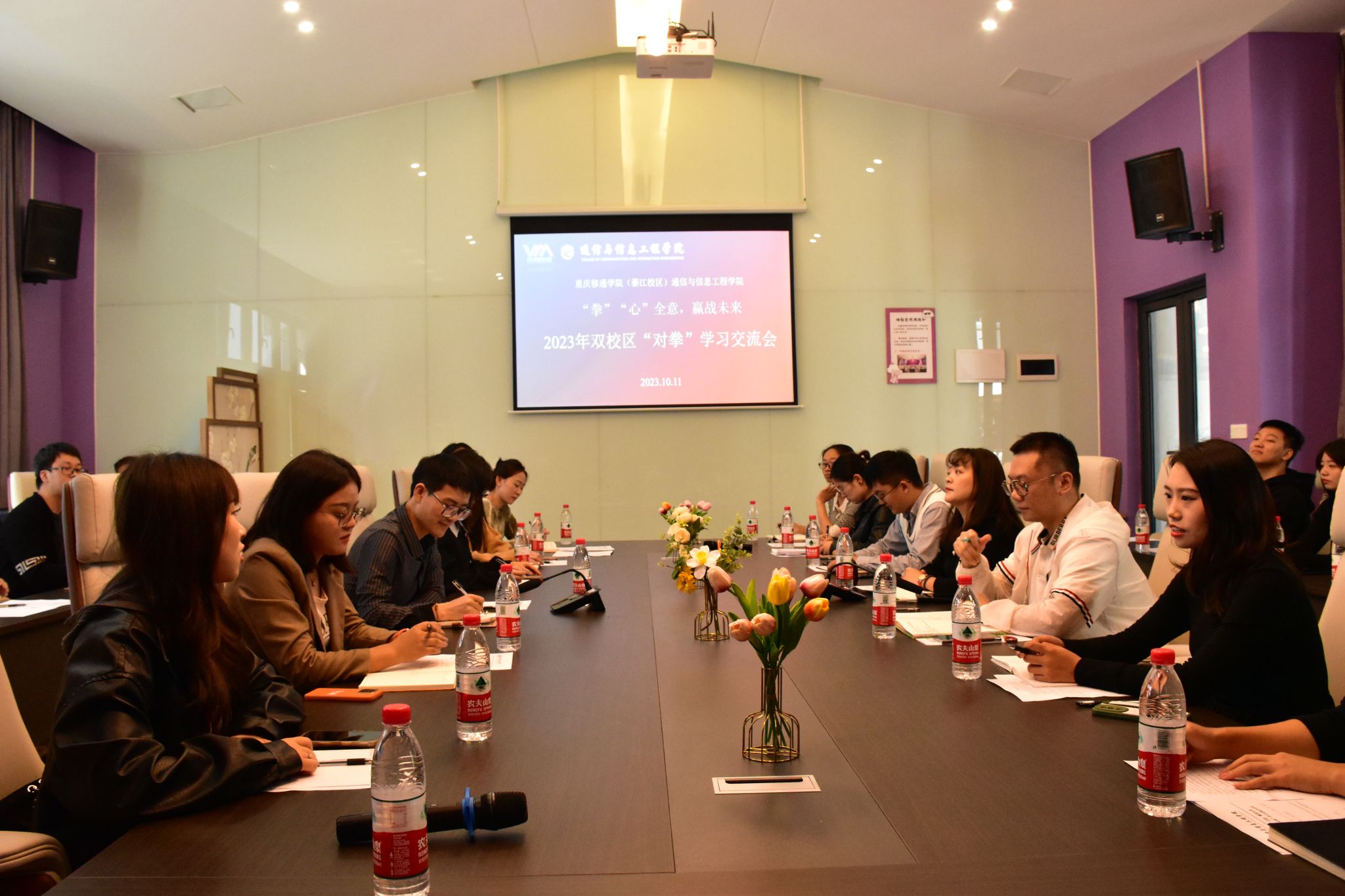 为促进学院双校区之间的互动联系,提高双校区师生工作实效,通信与信息工程学院于10月11日上午10:30在观云书院小雪会议室开展了双校区“对拳”交流会议。学工副院长熊斌老师、团总支书记孙怡老师(合川校区)、团总支书记田海燕老师(綦江校区)以及合川校区辅导员代表、綦江校区全体辅导员、学院团学组织主席团成员参与会议。