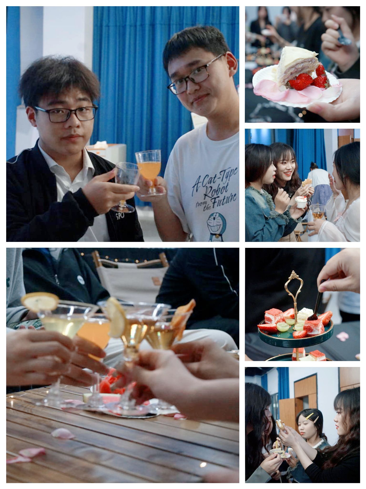 品酒会友,欢度食光。共赴一场有腔调的礼仪酒会,邂逅礼仪文化魅力,体验非凡味蕾感受,找寻特别情调生活。酒会现场,由同学们制作的礼仪作品琳琅满目,以低饱和度的装饰作为点缀,放下现实中的烦恼与焦虑,到场宾客无一不沉浸在这场“礼仪之乡”。