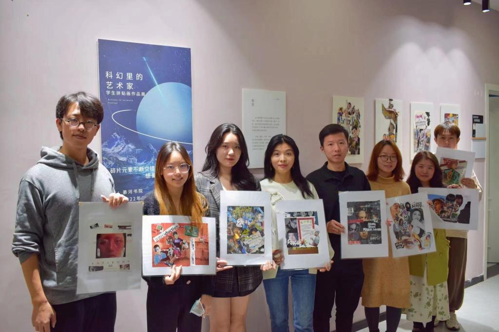 綦河书院依托书院突出鲜明的建筑风格和书院特色的文化育人平台,整合丰富的“家文化”资源联动瀛洲科幻学院共同开展“科幻里的艺术家”——学生拼贴画作品展,通过文化润物无声、涓涓细流的书院“家文化”生态;前期让学生经过调研收集,从“碎片化”的素材中挑选出于和人设计主题最契合部分的元素,对元素进行糅合、重组、叠加,从而使其在视觉上具有叙事性,同学们运用各种“搭边”及“不搭边”的元素结合的拼贴画进行学生作品展,让其原本单一的素材变化丰富,每张贴花风格独特,让同学们通过艺术再创造,在想象与现实中不断融合,培养同学们的艺术鉴赏能力,增强艺术感性。