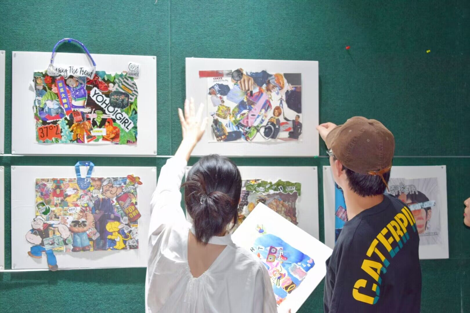 此外,为了能够将同学们独一无二的想象力展现在更多人眼前,瀛洲科幻学院的教师团队也为此付出了不少努力。从作品的保护方面出发,为了让同学们创作出的“心血”不被雨水侵蚀,老师们提前将每一张画作进行塑封,把同学们的艺术创作视为珍宝;同时,为了为提升本次拼贴画展的整体表现力,老师们亲自到场,对画展进行布置,只为让更多学生认识科幻,感受艺术,推动同学们的艺术鉴赏能力更上一个档次,为同学们的生活更添一份色彩。