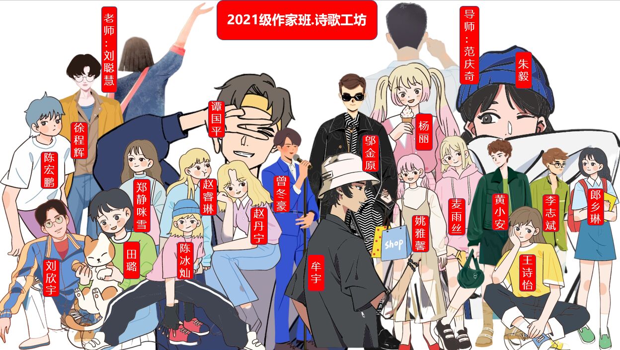 (2021级数据科学与大数据技术1班 郎乡琳)在诗歌工坊我遇见了这样一群伙伴,我们热爱文学,热爱诗歌,一起写诗一起玩闹。诗歌工坊的这一年,我最感谢的就是范庆奇导师,对我而言,他是恩师和偶像一样的存在。如果没有他,我也不会第一次投稿就能成功,我也不会对文学对诗歌,越来越热爱。