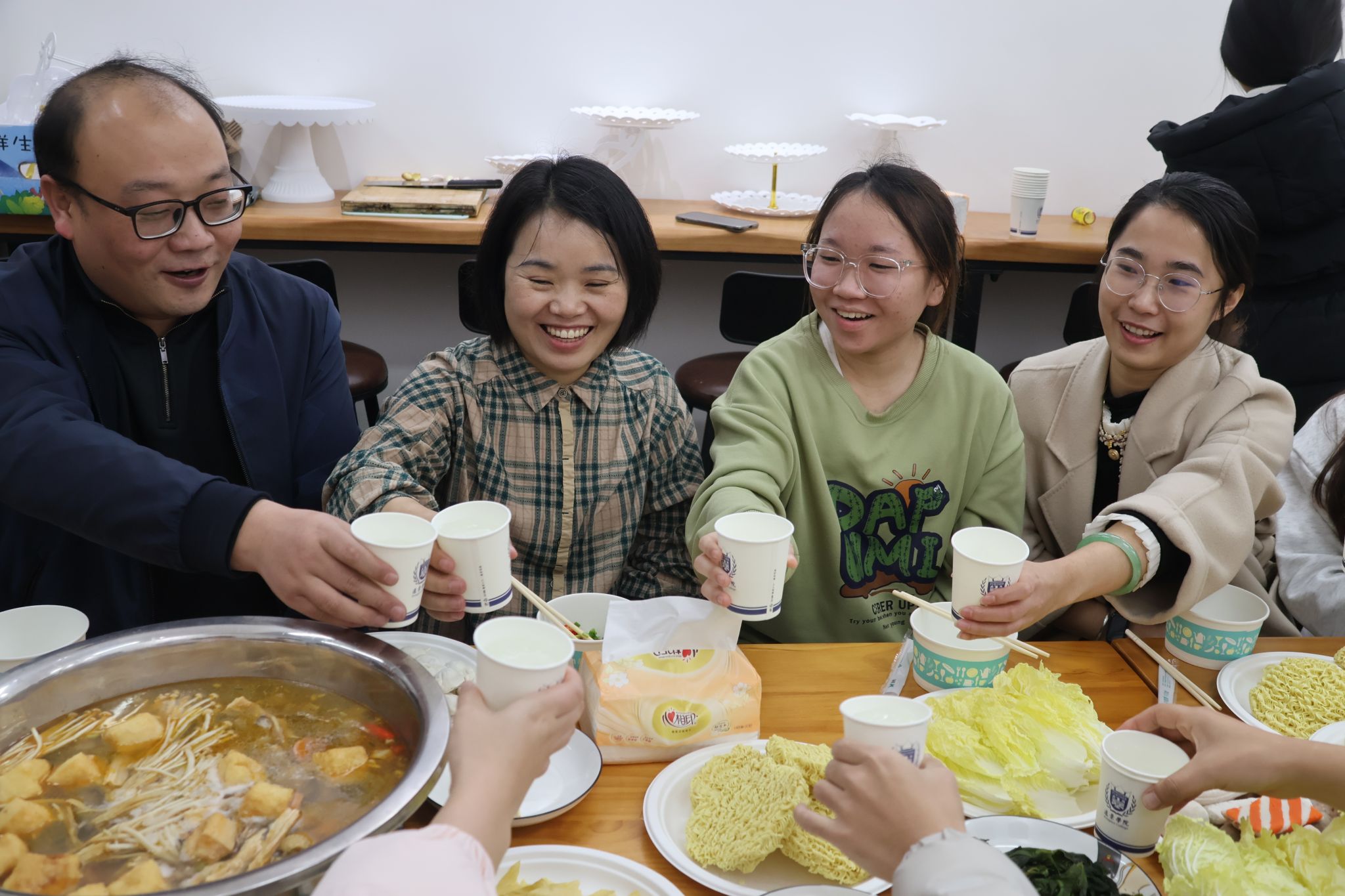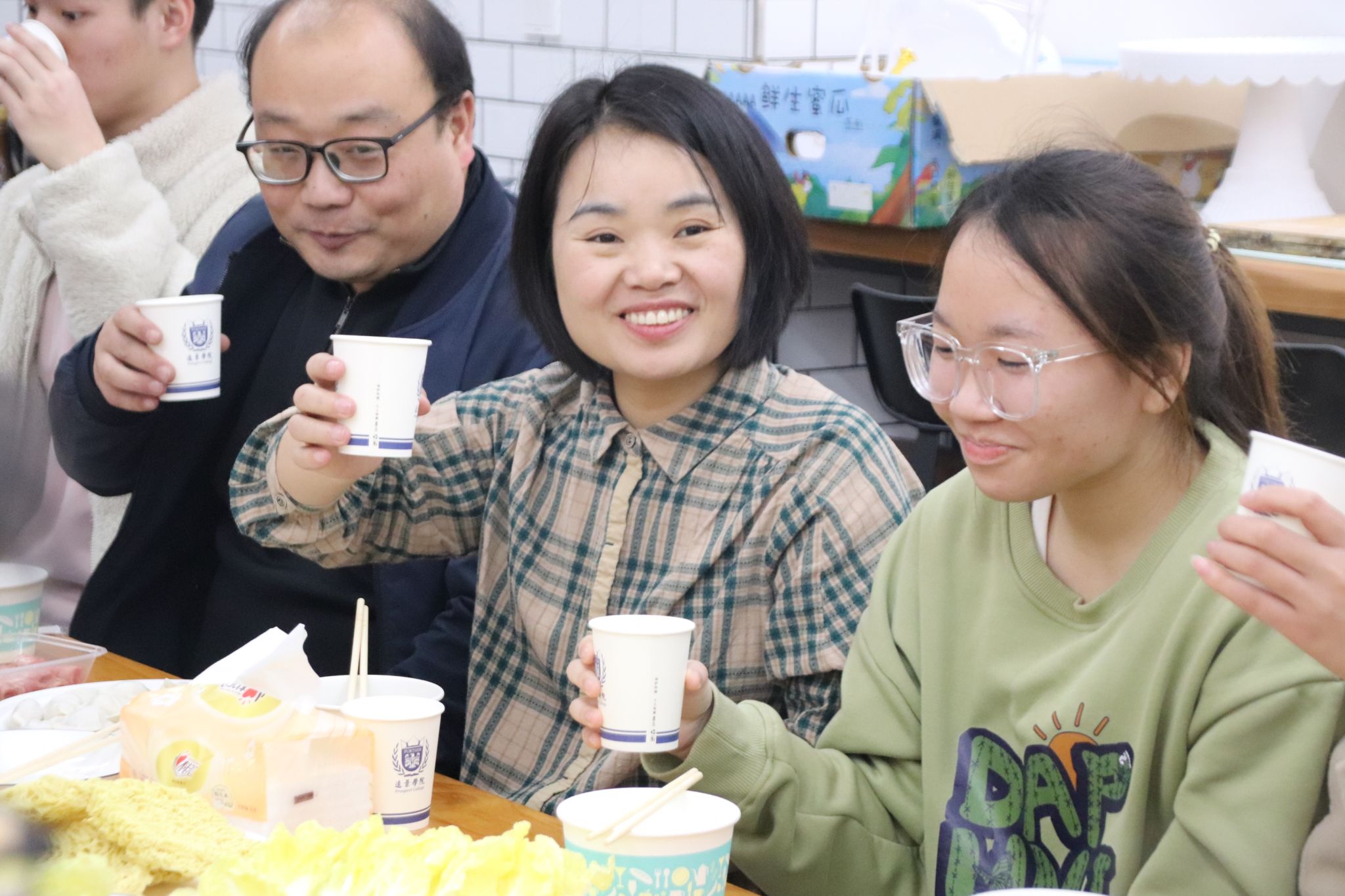 共膳过程中,谢校助不仅倾听了学生的心声,还提出了对学院发展的期待。她强调,远景学院的教育目标不仅是为社会培养人才,更要引导学生在社会实践中实现自我价值。希望在未来,同学们不仅能在课堂上出彩,更能为社会贡献智慧和力量。强院举杯邀请同学们一起感谢谢校助对学院、学生的关心,并表示学院未来将进一步优化教育资源,为学生创造更优越的成长环境。