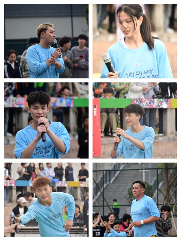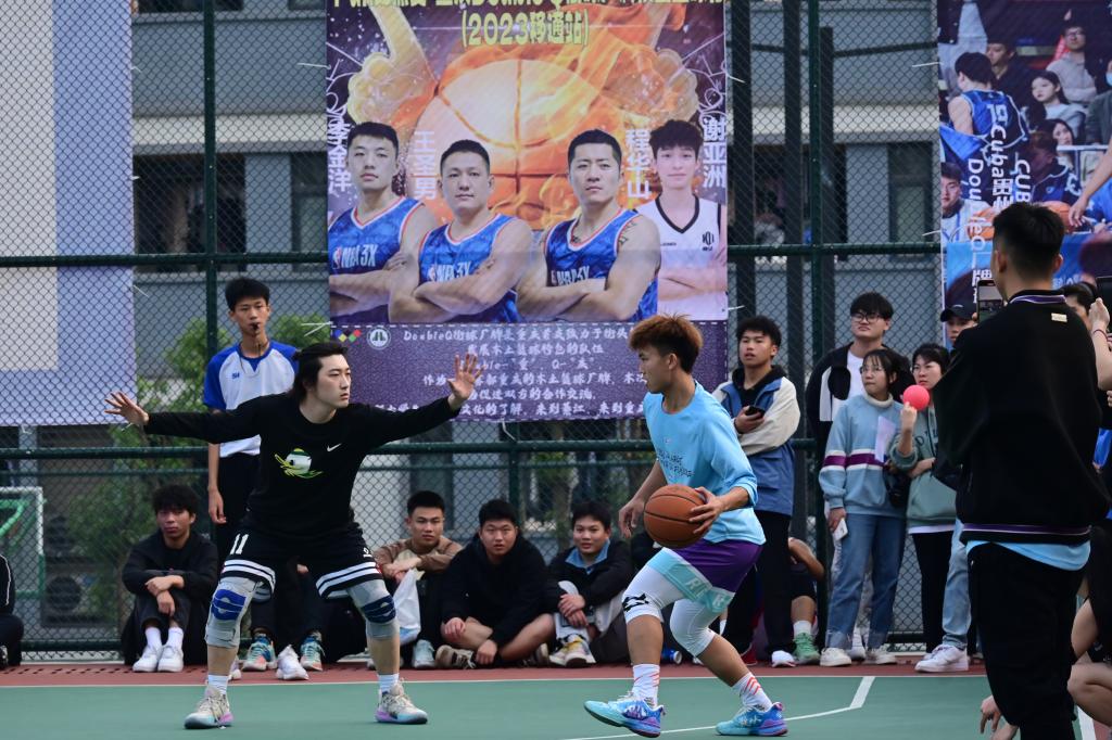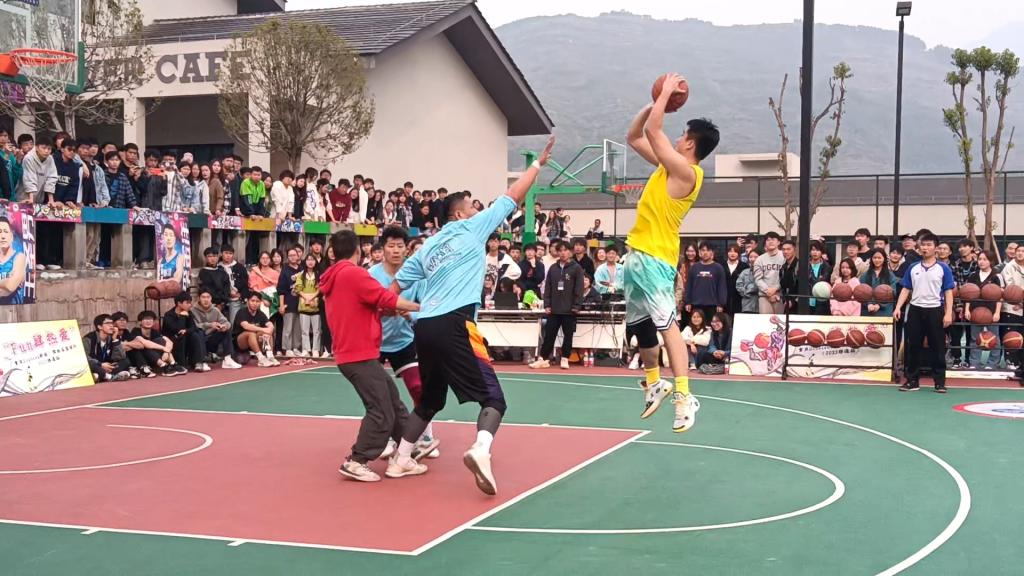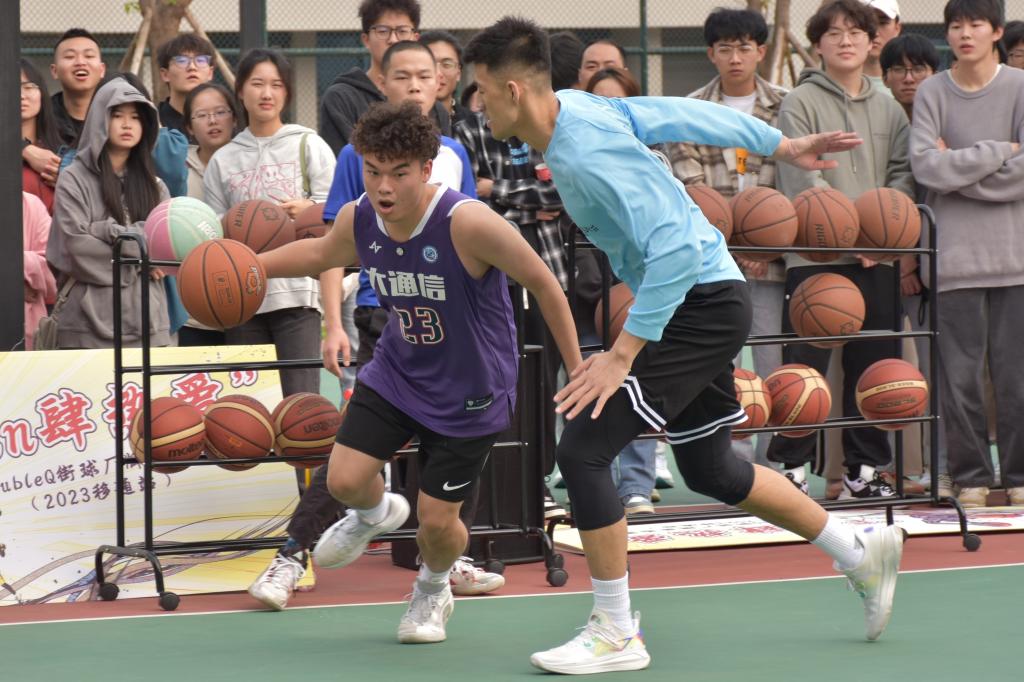 而现场氛围也因为3v3半场接力赛的开始而迎来下一波高潮。DoubleQ球员王圣男、程华山、胡匹夫、李金洋轮流上场守擂,移通学子拾伍队在这场比赛中以11:4的比分率先拿到第一个团队第一,一声声叫好充斥在赛场,我校教职工队的匡鹏、秦晴、胡荣轩老师也不甘示弱,在对方三员大将的强力围追堵截下,以11:7的比分拿下一局,三位授课领域不一样的“扫地僧”向我们展示出什么是真正的深藏不漏,师者风范,他们以活力的姿态引领着移通学子。这场比赛我们看到了移通学子强劲的篮球实力,与“不怕输、不愿输、不服输”、顽强拼搏的运动精神,少男少女们在球场上意气风发,球筐承载了他们的骄傲与美好。