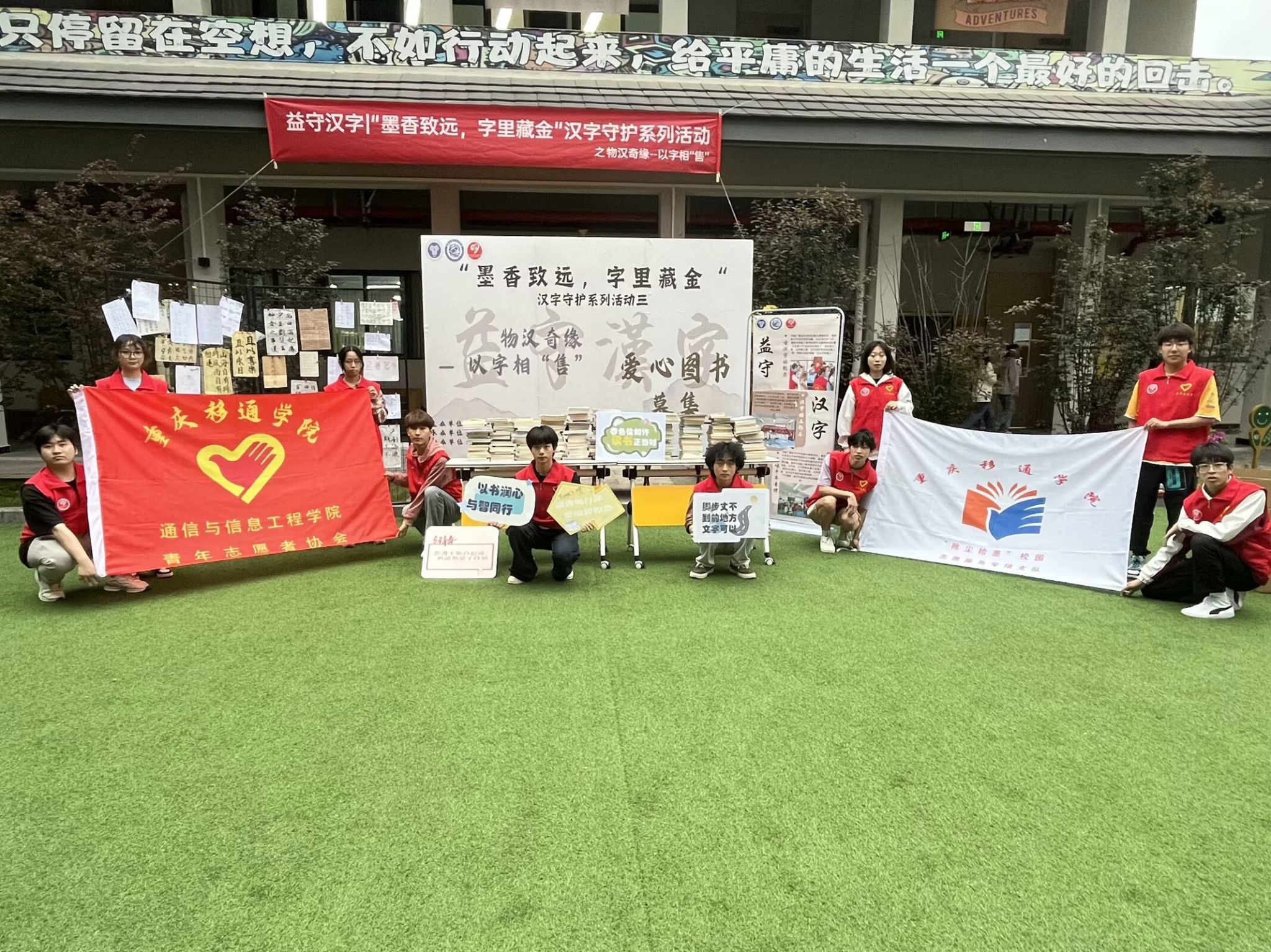中文是世界上使用人数最多的语言之一,有着超过十亿人口的母语使用者。中文也是一门历史极其悠久的语言,从上古汉语到现代汉语,从甲骨文再到如今的汉字,中文见证了中华文明的发展。而汉字承载了中华文明,渗透着中华独有情感,撇捺之间流露着文化自信力。值第15个国际中文日来临之际,2024年4月1号至4月17号,通信与信息工程学院青年志愿者协会开展“墨香致远,字里藏金”的汉字守护系列活动。该活动涵盖了汉字艺术创作、听写大赛、以字相‘售’和汉字寻宝等多种形式,体验汉字魅力价值,培养同学们对汉字文化的珍视和保护意识。此系列活动参与人数800余人,受益人数1200余人。