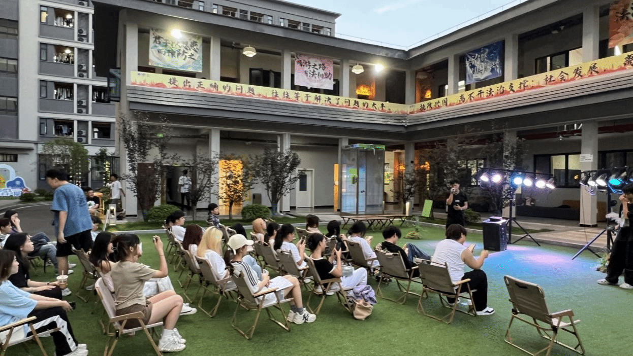 随着中国有嘻哈2024的激情开演,说唱爱好者们对说唱艺术的热爱也愈发浓烈。2024年6月5日一场激情四溢的说唱表演活动在瀛溪书院中庭成功举行。来自綦怪YTR说唱社的Rapper以及热爱说唱艺术的观众们共同参与了这场妙趣横生的活动。此次活动旨在提供一个让说唱爱好者展示自我、交流学习的平台,用音乐激发同学们对说唱艺术的兴趣,发扬说唱文化。现场气氛热烈,吸引了大批观众前来观看。