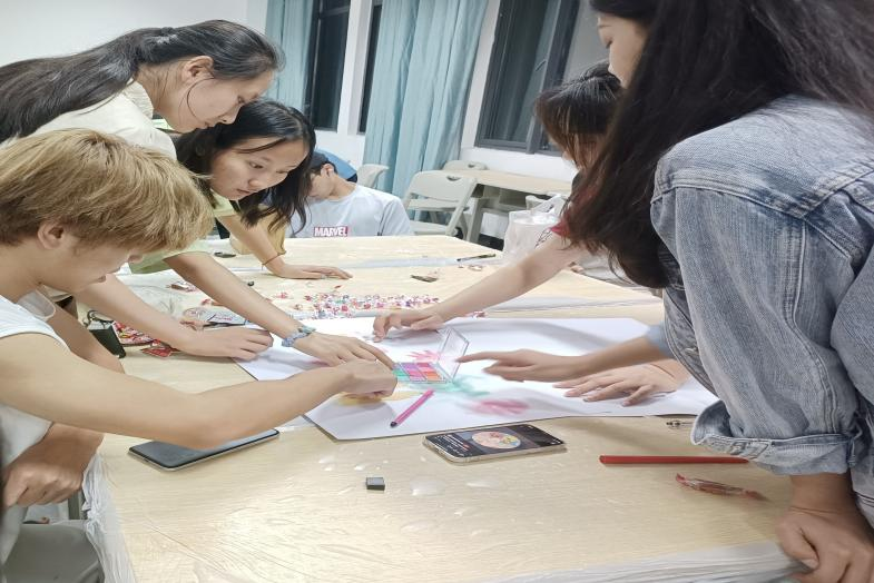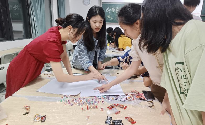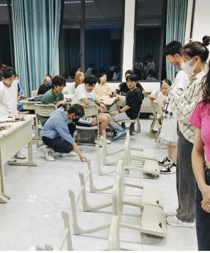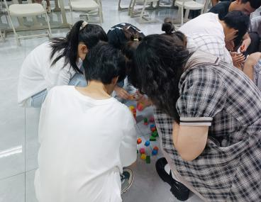 为增强同学们慎思而后行的意识,活动环节,环环相扣,通过参加改编的“达芬奇密码”、“积木城堡”拓展游戏环节,以此获得最后环节的画具。首先开始的是“达芬奇密码”拓展活动,根据入场就坐的位置默认分成的6个组,每组派出6名同学。每个小组需按要求依次从小到大翻出对应的扑克牌,用时最短就可以获得更多的画笔。各小队采取不同的策略,有的小队争分夺秒冲刺去翻牌;而有的小队则进行了战略分工,记录顺序以此完成最后的一次性翻牌。各小组经过激烈的角逐后,各小组获得了相应画笔。接着,进行了“积木城堡”互动环节,在时限一分钟里将积木搭的最高的小组获得胜利。每位同学通过观察后谨慎的搭出手里的积木。最终3个小组获得了备用素描纸。