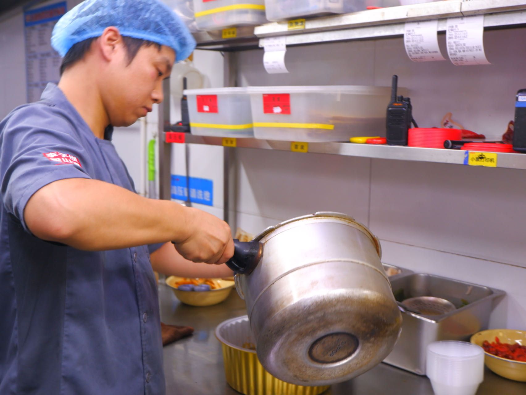 作为重庆知名美食品牌,李子坝梁山鸡已有四十余年历史。同学们将位于李子坝正街的李子坝梁山鸡首店作为采访的第一站。近日,李子坝梁山鸡的制作技艺被评选为渝中区区级非物质文化遗产代表项目,新闻研修班同学们紧跟热点,对李子坝梁山鸡老店店长高女士和曾师傅进行了专访,并近距离地观察了李子坝梁山鸡的制作工艺,了解了该美食品牌与城市文化的融合,并探索该品牌从一家八张桌子的老店,变成全国几十家连锁店的商业故事和历程。